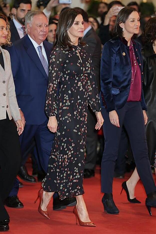 La Reina suele apostar por looks cómodos pero sofisticados y con toques de tendencia en sus visitas a la Feria de Turismo. Pero este año, además, el vestido que ha elegido tiene un significado muy especial. Se trata de un diseño de viscosa negro con estampado 'arty' en tonos verdes, rojos y maquillaje de Massimo Dutti que estrenó el pasado mes de octubre para poner la guinda a un viaje de estilo impecable a Corea del Sur. ¿Y qué país es el invitado este año a FITUR? ¡Bingo!