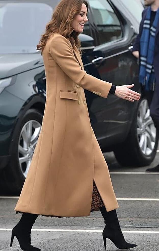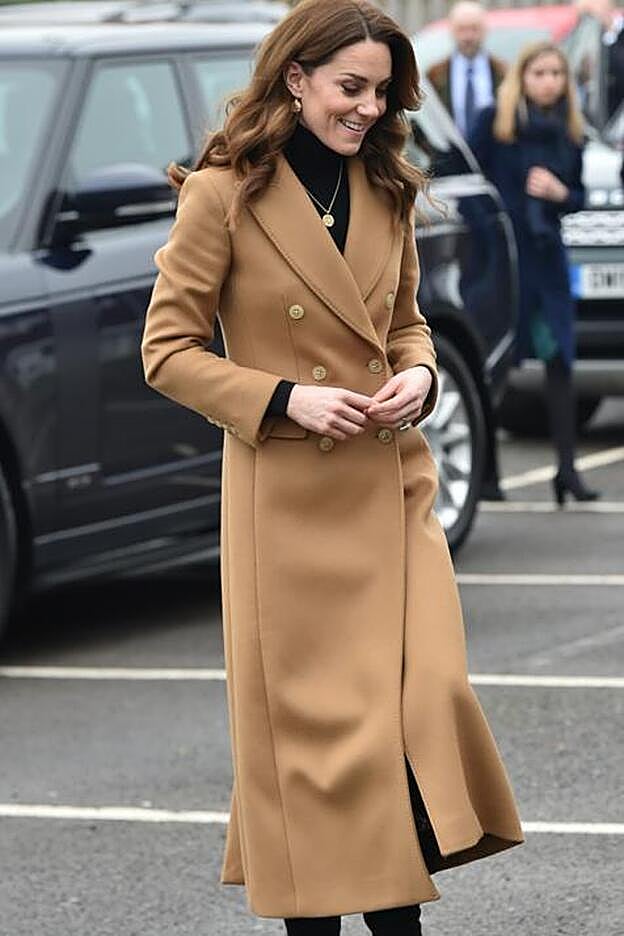 Pero la falda estrella de Zara no es la única prenda de rebajas en el look de Kate Middleton... La Duquesa de Cambridge ha completado su estilismo con el único abrigo que cualquier mujer necesita en su fondo de armario: uno cámel cruzado de silueta masculina y que, en el caso de Catalina, está disponible en Massimo Dutti, rebajado de 349 a 199 euros.