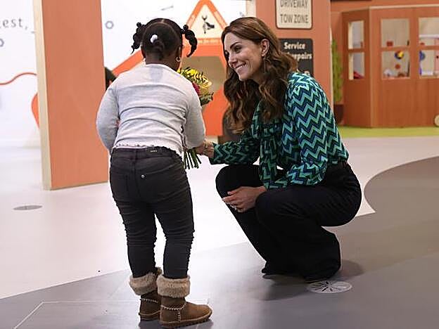 En un acto sorpresa que no aparecía en su agenda oficial, Kate Middleton visitó junto a un grupo de niños el Museo de Ciencias de Birmingham con una blusa de estampado geométrico con detalle de lazo e inspiración setentera capaz de transformar (y mejorar) cualquier look de oficina. La suya es de Tabitah Webb y cuesta más de 300 euros...