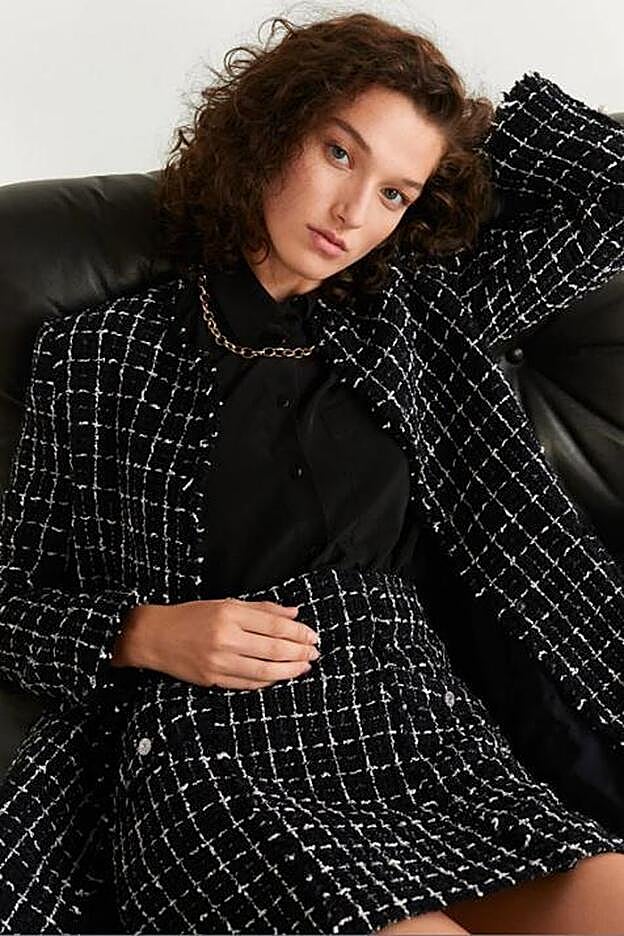 El traje de Dolce&Gabbana de Kate Middleton, con su clara inspiración en Chanel, además de caro, es de la temporada pasada y no hemos conseguido encontrarlo en ninguna tienda online así que, para no quedarnos con las ganas de copiar a la Duquesa de Cambridge, hemos tirado de clon 'low cost' de rebajas con un dos piezas muy similar de Mango que no llega a los 60 euros (la chaqueta pasa de 69.99 a 39.99 euros; y la falda, de 39.99 a 19.99 euros).