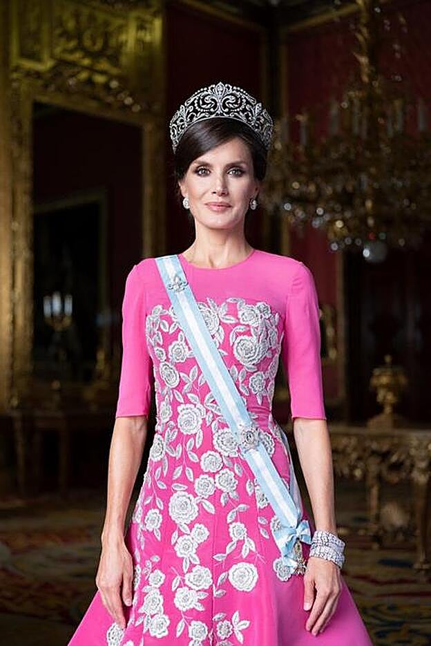 Con un maquillaje y peinado impecable, puede que estemos ante el retrato más imponente de los Reyes hasta el momento. El rey Felipe VI, posa en la fotografía con diversas condecoraciones, entre ellas, la Orden del Toisón de Oro, el gran collar de la Real y Distinguida Orden de Carlos III, la placa de la Real y Distinguida Orden de Carlos III y las placas de las Grandes Cruces del Mérito Militar, del Mérito Naval y del Mérito Aeronáutico mientras que Doña Letizia luce la banda y placa de la Gran Cruz de la Real y Distinguida Orden de Carlos III.