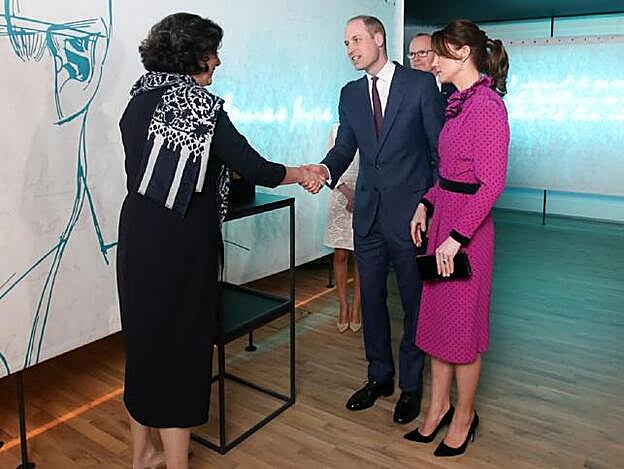 Un diseño con cuerpo con botones, manga larga y cuello con volantes que firma Oscar de la Renta y que guarda gran similitud con una de las mejore elecciones de Diana. Además, es una prenda 'vintage' de temporadas atrás que la duquesa combinó con complementos negros a juego con el cinturón: un 'clutch' alargado terciopelo de Jimmy Choo y 'stilettos'.