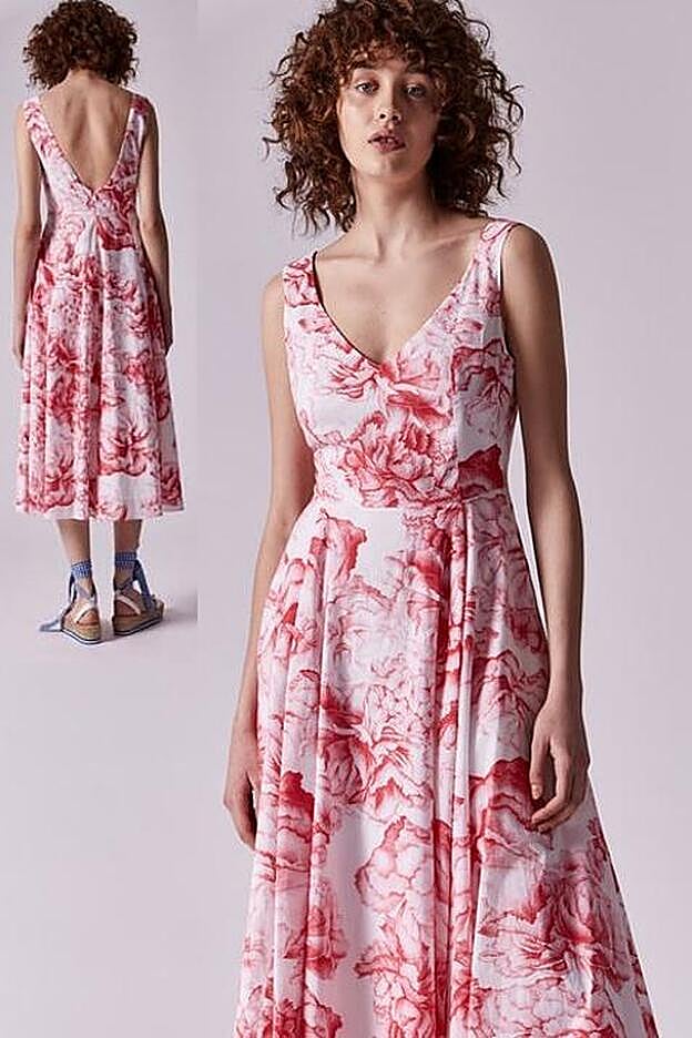 Para esta ocasión, la Reina escogió un vestido blanco con un estampado floral en tonos rosas. Un diseño de corte midi, falda de vuelo, escote en pico y tirantes que resaltaba el moreno de la monarca (así consigue su bronceado) y que ya llevó el pasado verano durante las vacaciones en Palma y agotó en pocas horas. Esta vez, apostó de nuevo por combinarlo con unas alpargatas de cuña con el empeine también en forma de pico y en color beige, una coleta y unos pendientes muy sencillos. Y tenemos que reconocer que el rosa le sienta de maravilla. ¿Será el nuevo rojo para Doña Letizia?