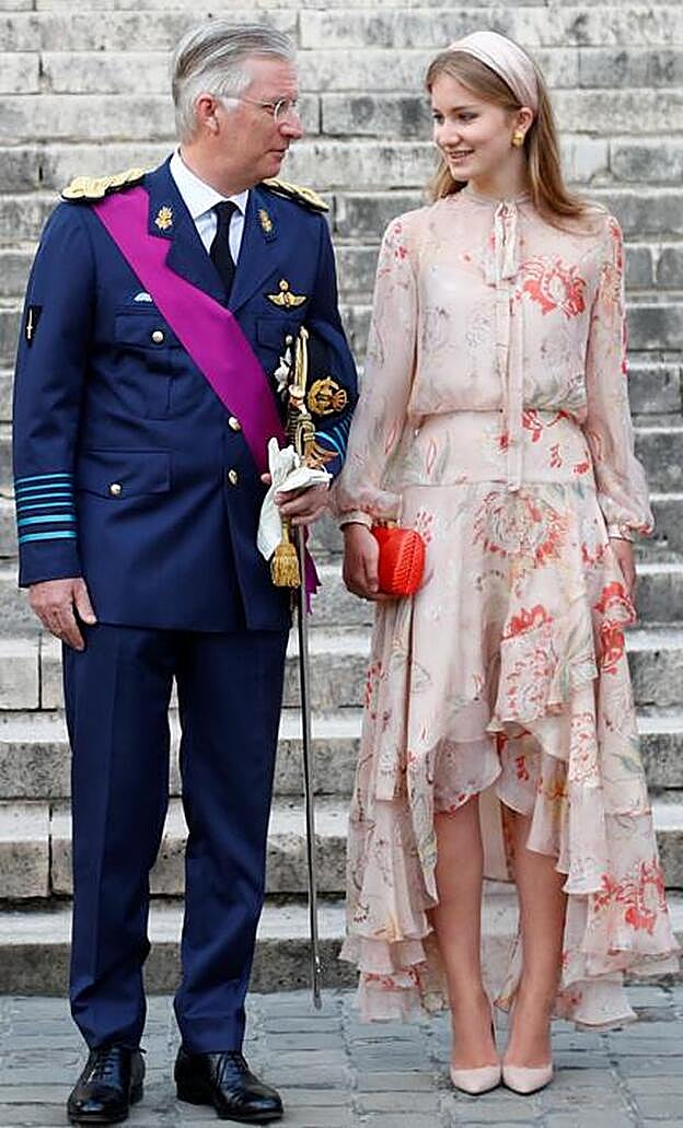 La familia real belga acudió a una misa para celebrar el día nacional de Bélgica. Un acto en el que la princesa acaparó todo el protagonismo e hizo sombra a su madre, gracias a un look de invitada perfecto que ha sorprendido a todos y ha colocado a la joven en el foco del mundo de la moda. Elisabeth escogió para la cita un vestido rosa empolvado con un delicado estampado floral en tonos corales que combinó con complemetos a juego.