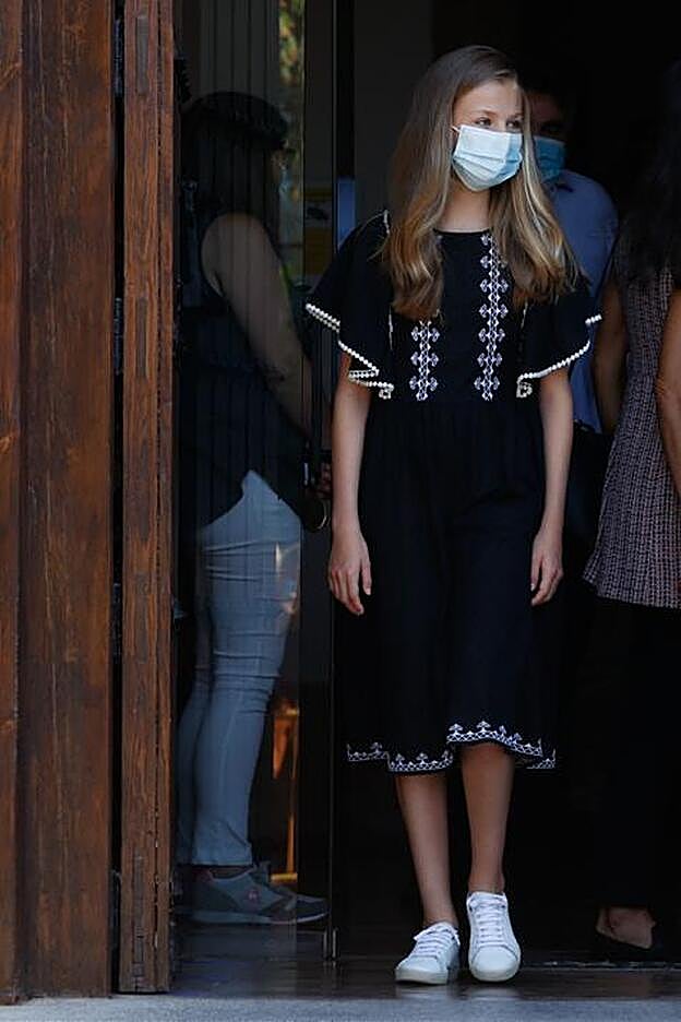 Leonor por su parte, recuperó un vestido de la sección de niños de Mango que ya llevó en otra ocasión. Se trata de un diseño midi un tejido de plumeti en color negro con bordados a contraste en color blanco y con la falda y las mangas acampanadas. En su momento, Leonor agotó en muy poco esta prenda que se convirtió en un éxito de ventas de la firma y que ahora la princesa ha llevado con zapatillas blancas, dando ese toque más juvenil.