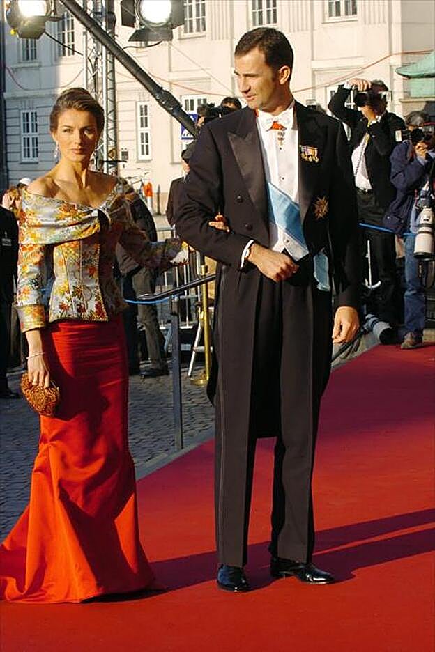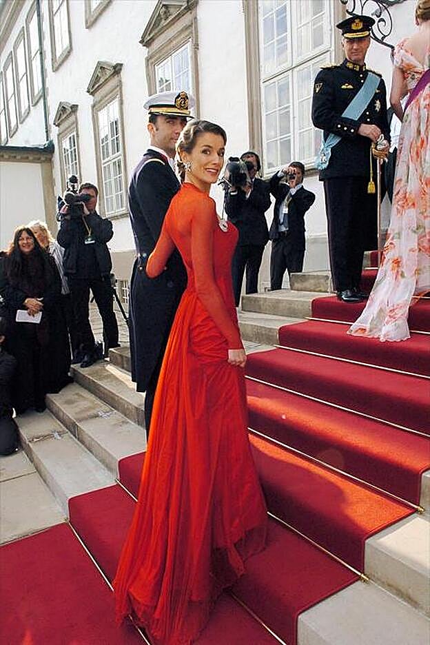 El 14 de mayo de 2004 está marcado en rojo en la historia de Letizia Ortiz. En rojo Caprile, de hecho. Una semana antes de su propia bodala prometida del entonces Príncipe Felipe tenía que pasar el examen de la realeza europea en el otro gran enlace real del año, el de Federico de Dinamarca y Mery Donaldson en Copenhage. El debut en sociedad no podía ser más a lo grande, y la periodista no solo lo pasó con nota, sino que se coronó como reina de estilo entre las 'royals' gracias a un inolvidable look que, 17 años, sigue siendo el mejor de todos los que ha llevado.