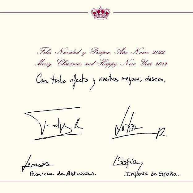 Pero más allá de tratarse de una fotografía inédita, de nuestra ansia por ver la vis instagrammer de nuestros Reyes y de sus looks informales, llama la atención un mensaje claro que subyace, y no nos referimos al afecto y los mejores deseos que envían de puño y letra, sino a la imagen de familia. El año pasado, don Felipe y doña Letizia desaparecieron del 'christmas y dejaron todo el protagonismo a la Princesa Leonor y la Infanta Sofía. Para las Navidades de 2021, aunque son ellas las que ocupan la posición destacada (y están guapísimas, por cierto), están acompañadas por sus padres, dejando clara la estampa de familia unida y feliz (sus sonrisas lo dicen todo).