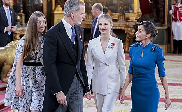 Quien opina que el rey Felipe encuentra fastidiosa esta labor de vigilancia de la reina Letizia, puede tomar nota de algo que sucedió poco después: el propio monarca sacó el pelo de su hija, atrapado bajo las medallas del Congreso y el Senado que acababan de imponerle, para que la reina no tuviera que volver a repetir la operación. Toda la familia, incluida una infanta Sofía imponente y muy consciente de su papel, estuvieron pendientes en todo momento de la princesa Leonor, mucho menos abrumada por las circunstancias que en sus últimos discursos.