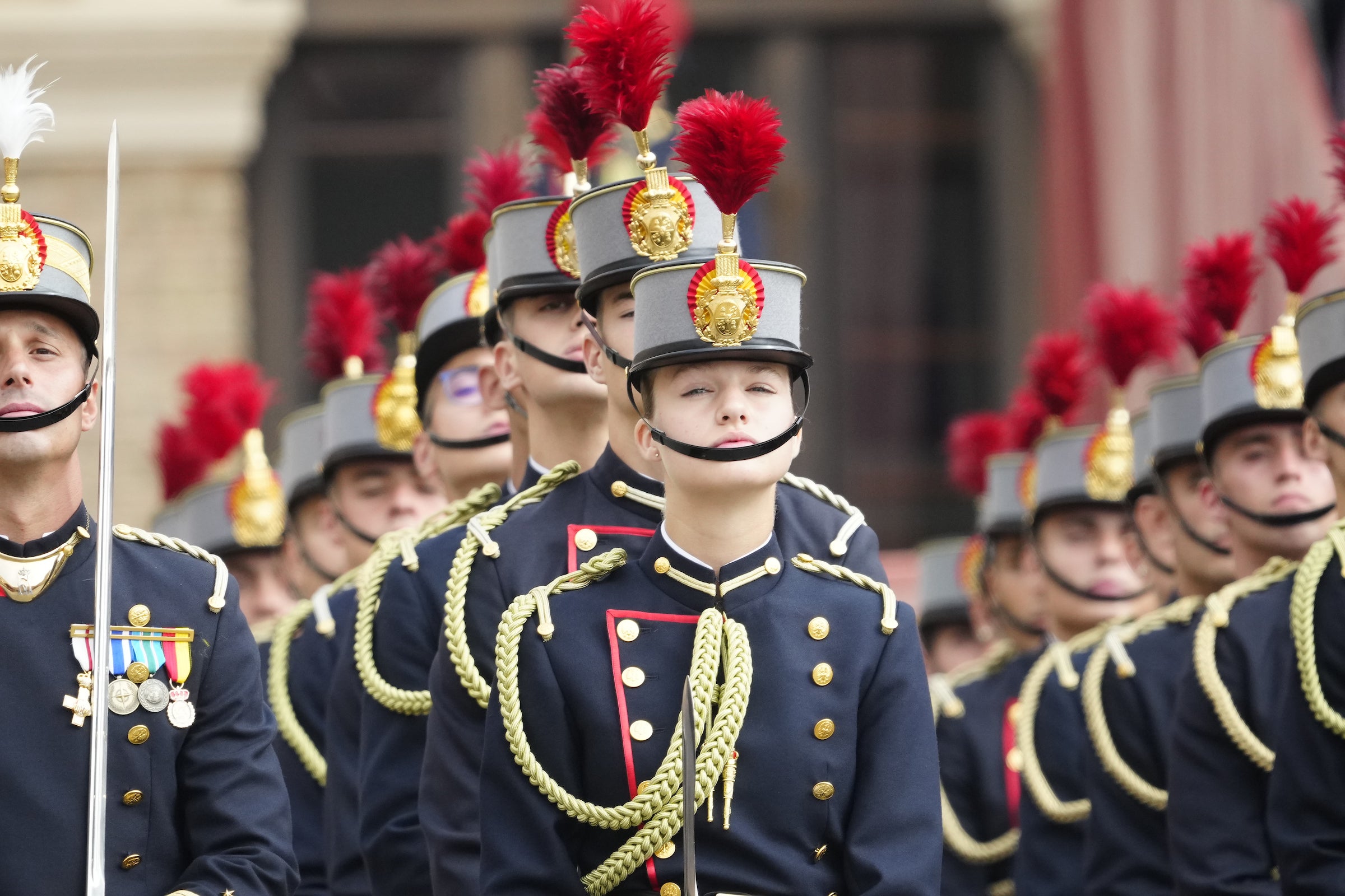 En su primer día, la princesa Leonor ha tenido varias clases y ha aprendido a formar junto a sus compañeros. Situada en la última fila, Leonor ha permanecido recta, como corresponde a los cadetes en formación.