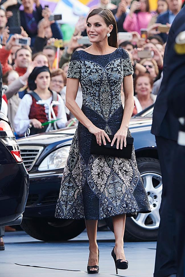 Unos salones negros altísimos, un bolso de mano y un maquillaje de ojos ahumado ponían el toque final a uno de los looks más alabados de la reina. De hecho, también es uno de los favoritos de la mujer de Felipe VI, ya que lo ha repetido en varias ocasiones.
