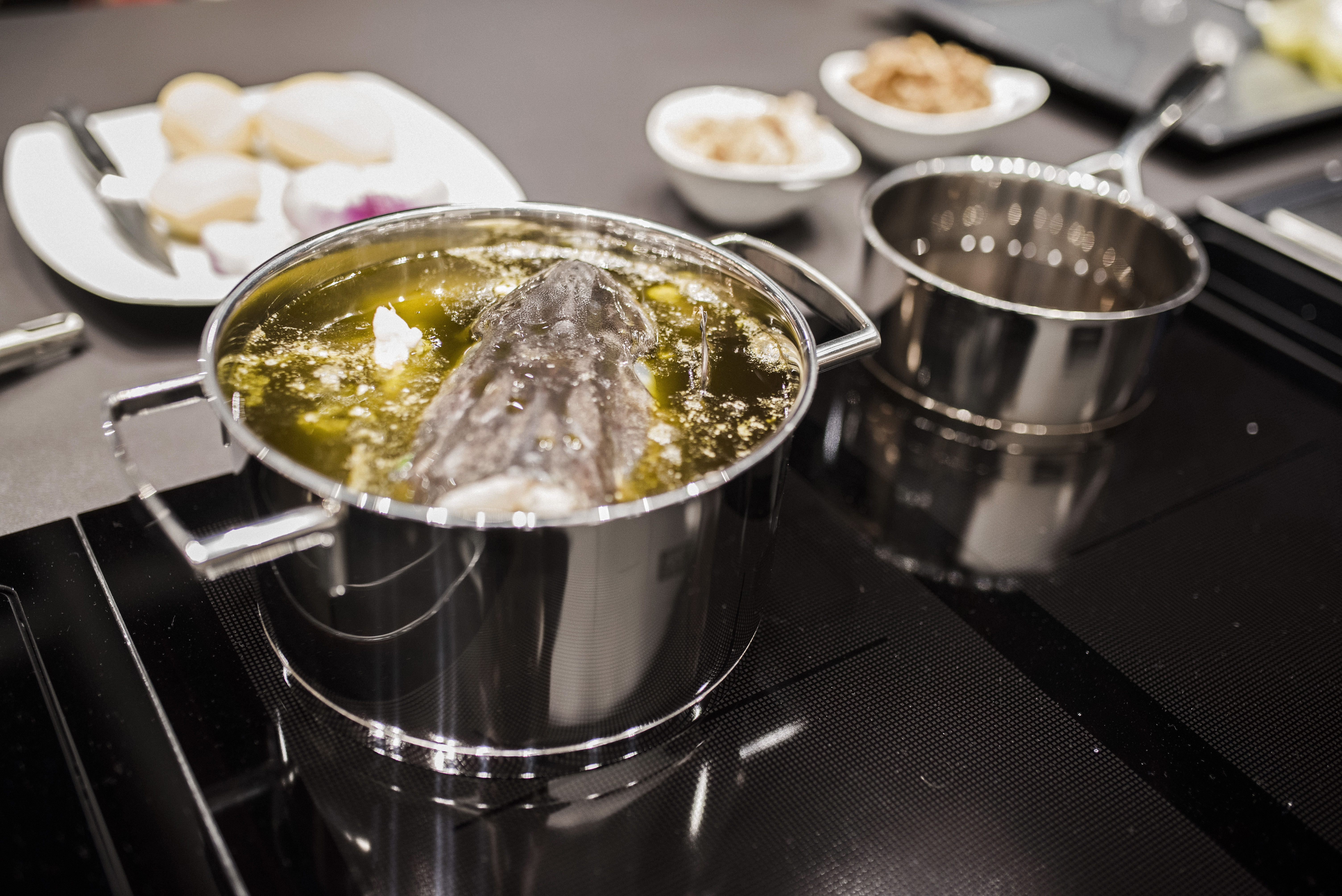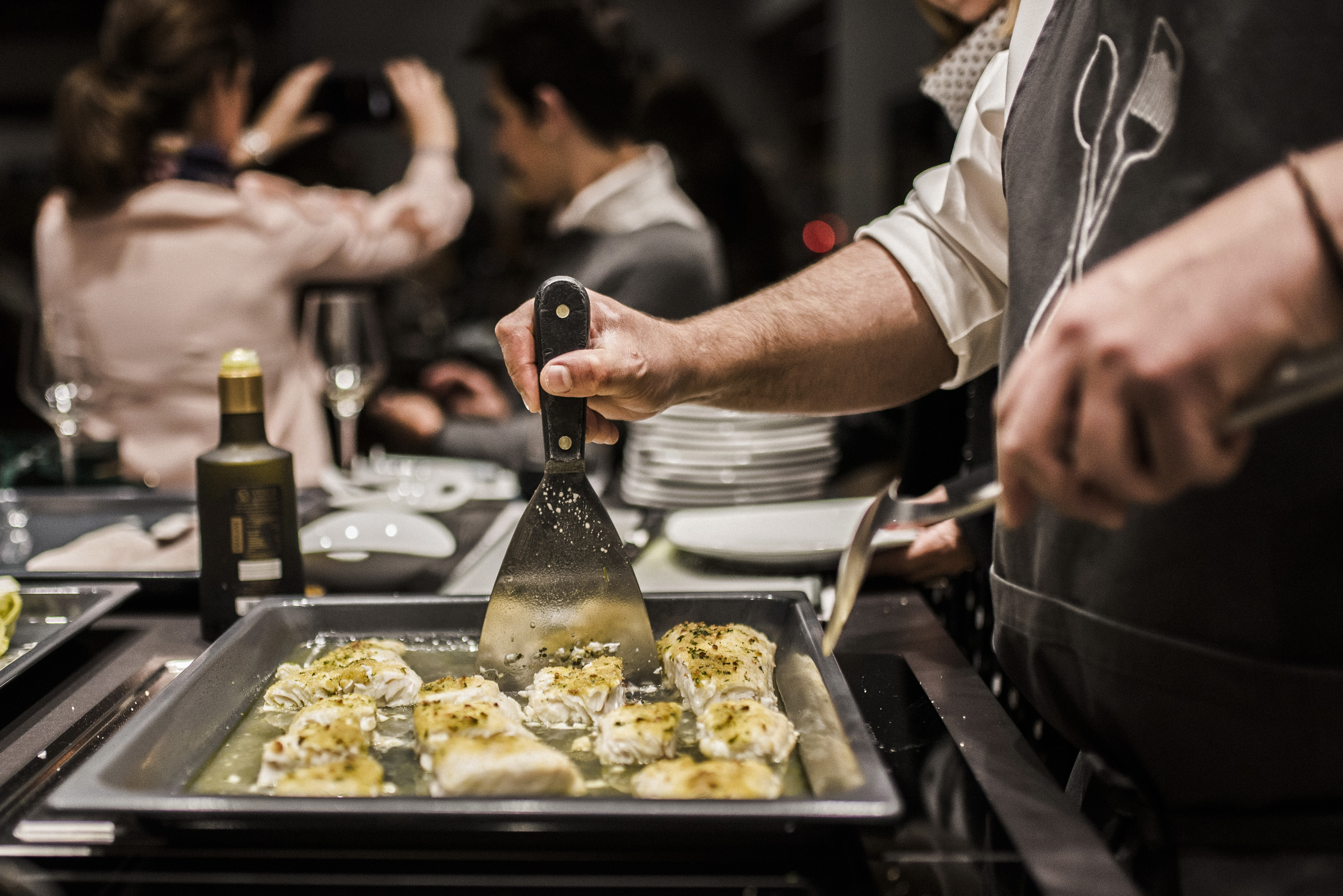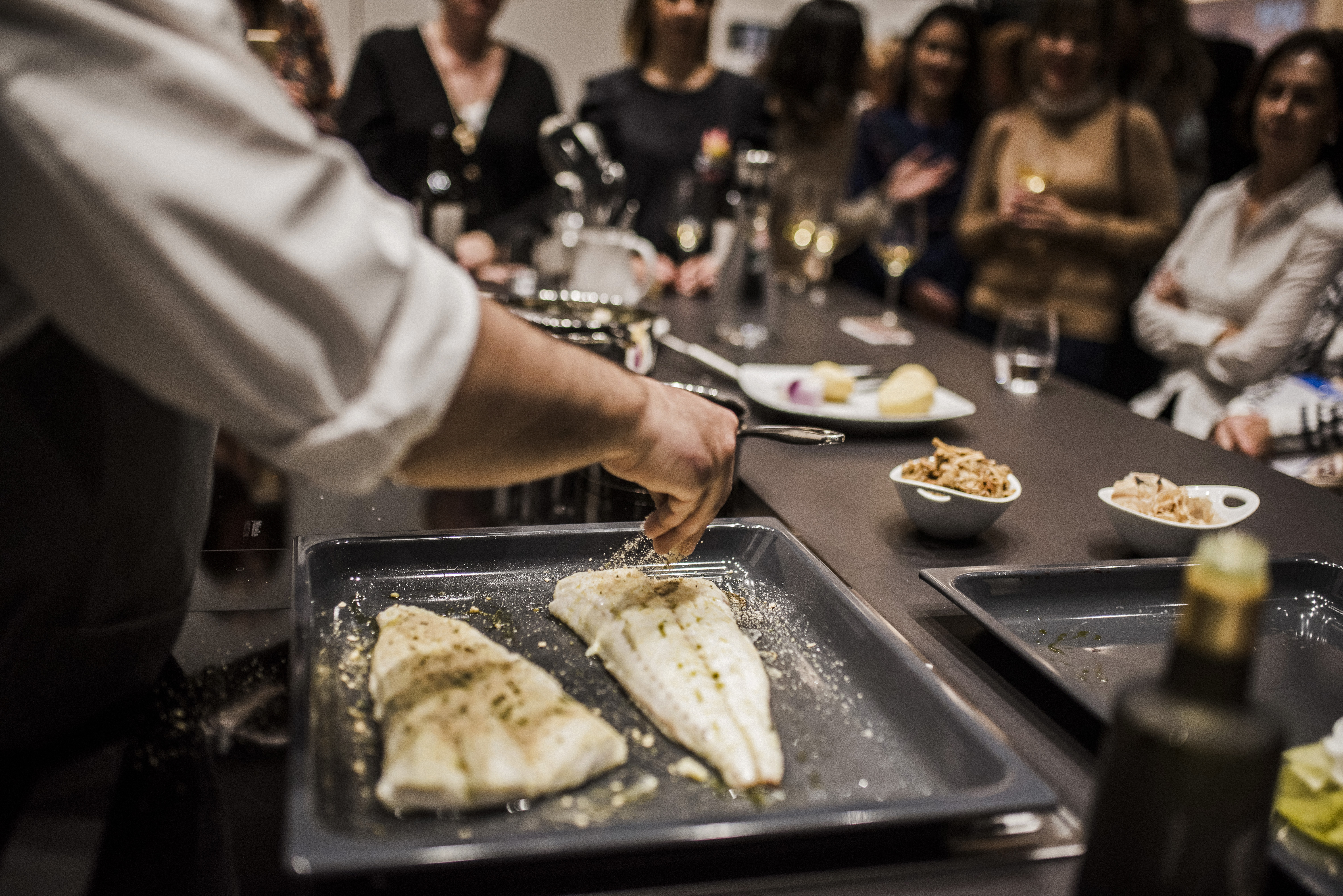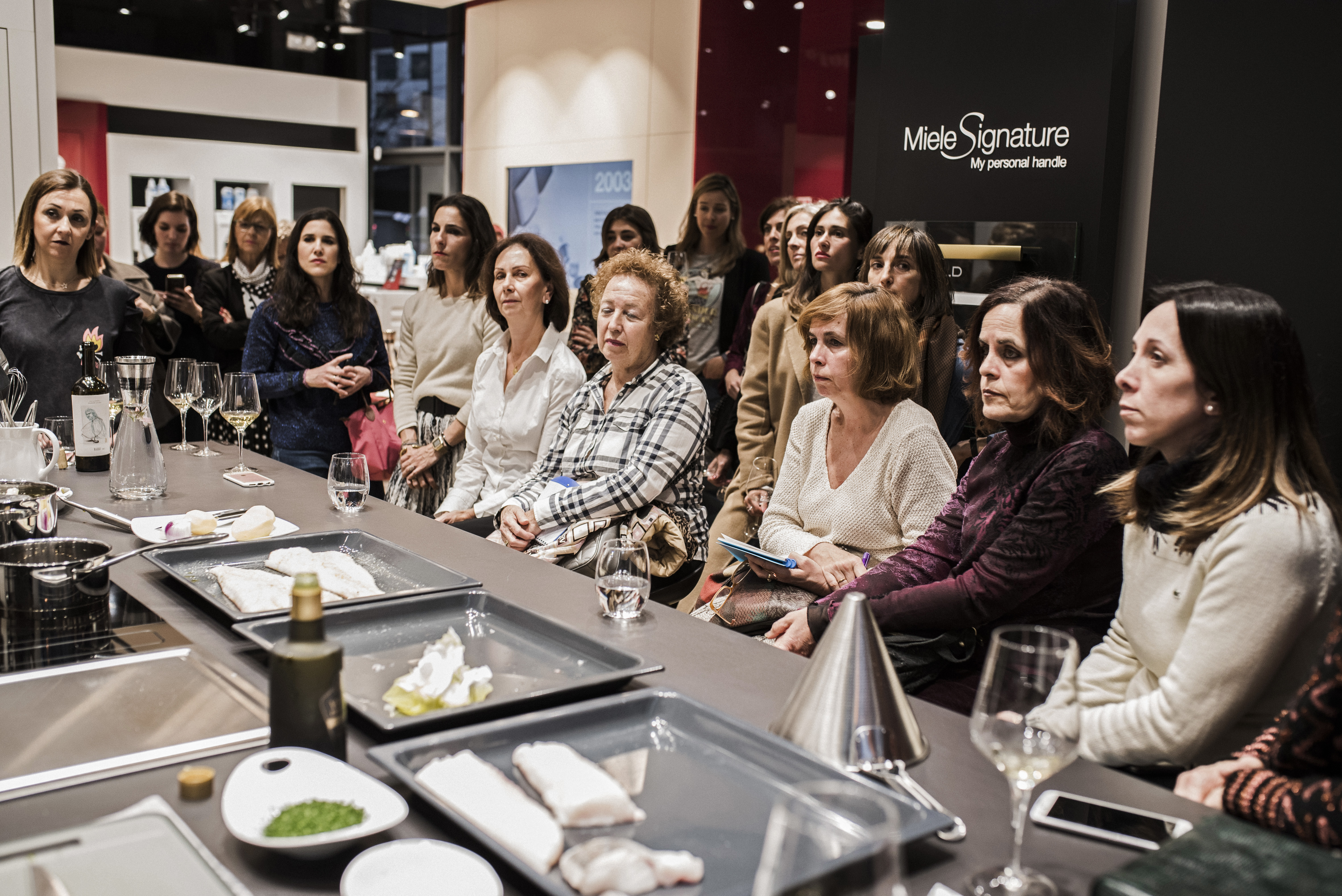 El lugar escogido fue el Miele Experience Center de Bilbao, un espacio idóneo en el que el cocinero compartió trucos y consejos para innovar en la cocina, y en el que aprendimos distintas formas de preparar uno de sus platos emblema: la merluza. Tras la masterclass, cómo no, las asistentes degustaron el menú mientras disfrutaban de una copa de txacoli. ¡No todos los días tiene una el privilegio de que le prepare la cena un chef con estrella Michelin!