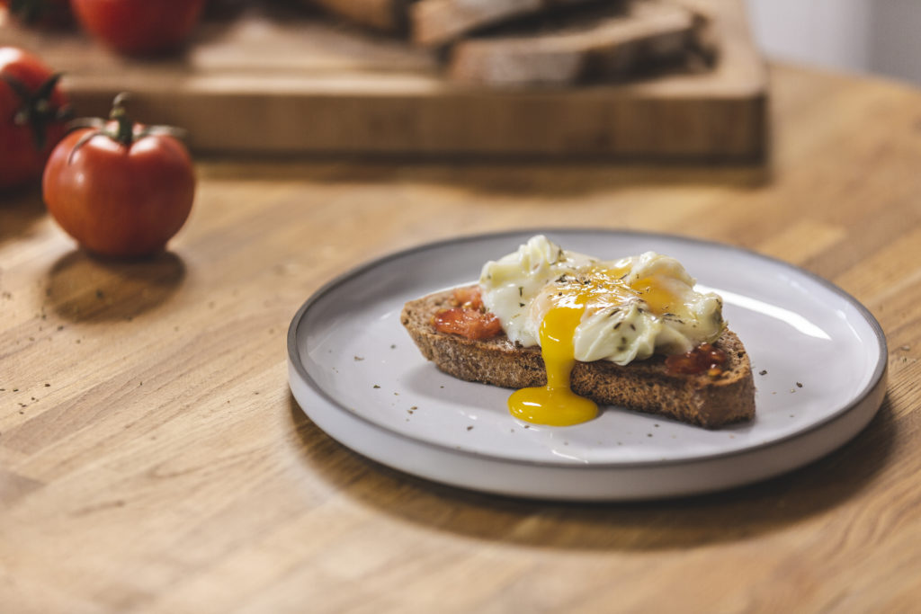 Calentar abundante agua en una cacerola hasta llevar a ebullición. Mientras eso ocurre, forrar con papel film el interior de un cuenco, engrasar con aceite y añadir un pellizco de hierbas provenzales y sal en escamas. Introducir el huevo en el interior, juntar los extremos de la lámina de papel film y cerrar bien con un cordón de manera que no se salga su contenido. Cuando el agua rompa a hervir, bajar el fuego e introducir el paquete que hemos preparado. Tapar y contar 3 minutos antes de retirar. El huevo poché, además de resultar delicioso, es una fuente de proteínas que permite afrontar el día con energía.