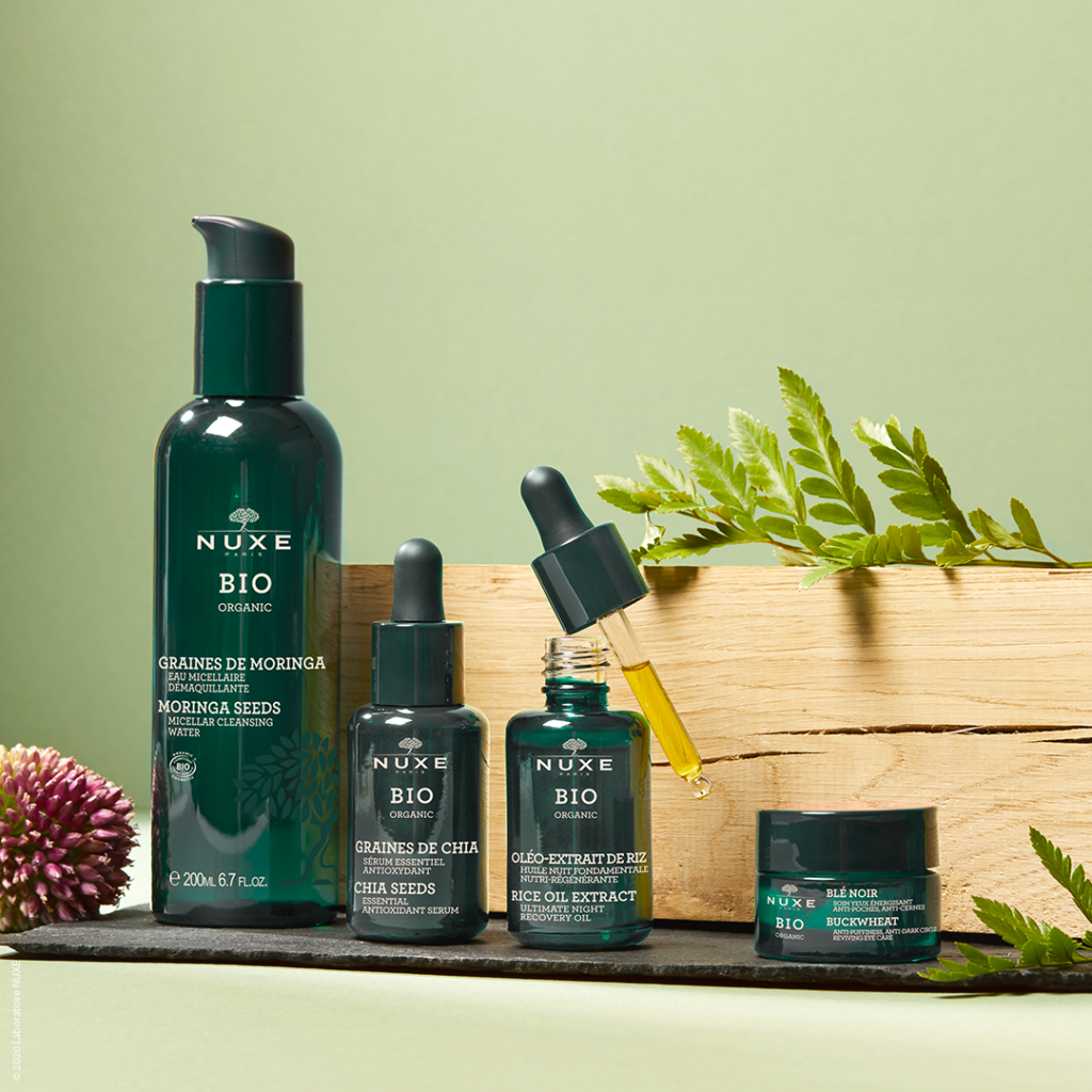 Los nuevos tratamientos Nuxe Bio son capaces de provocar emociones en un alegato hedonista que conecta con la tendencia actual de autocuidado y rituales personales. Para dar respuesta a la demanda creciente de cosméticos 360º sus creadores han seleccionado los ingredientes naturales más preciados de los que, gracias al progreso de las tecnologías verdes, extraen todas sus cualidades reinventando la cosmética bio tal y como un día la imaginamos: más potente, sensorial y alineada con nuestras convicciones.