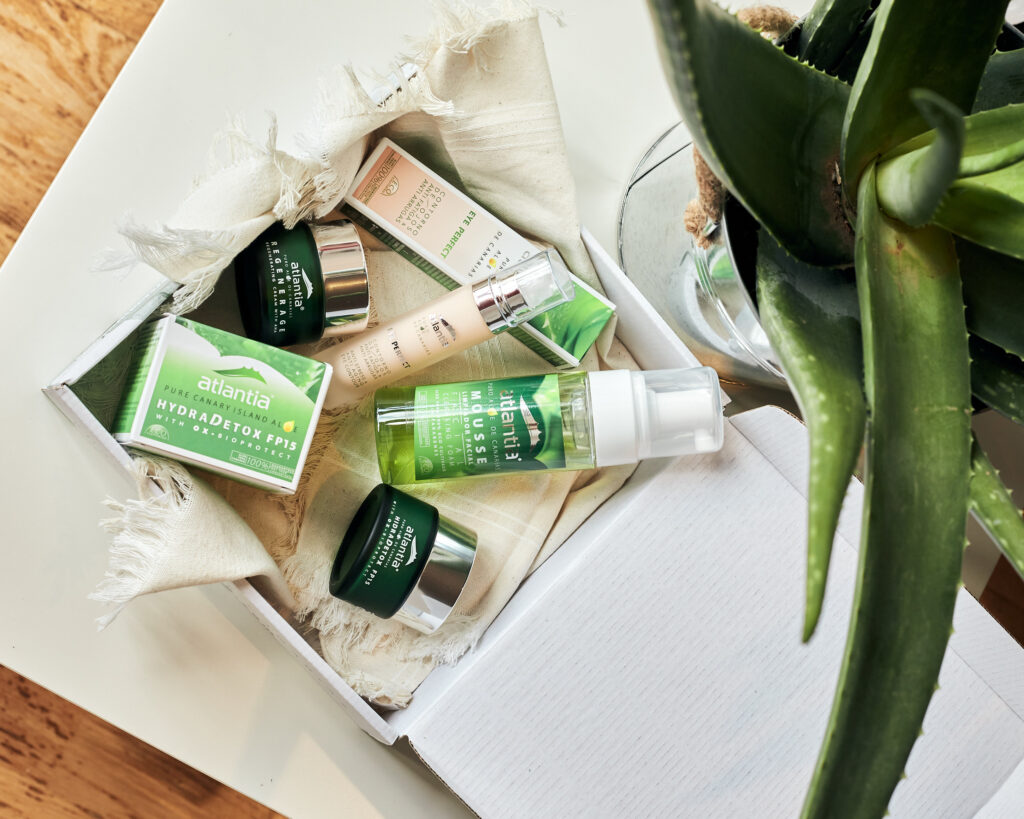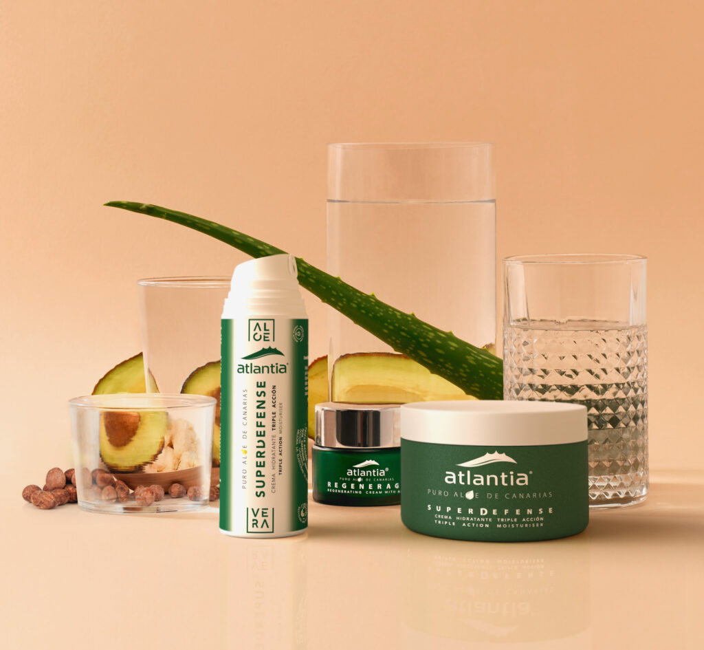Las cremas de Atlantia son un producto local elaborado con Aloe Vera puro 100% extraído directamente de las plantas de cultivo ecológico, procesado y estabilizado en frío para garantizar la conservación de sus principios activos. Esto permite que conserven todas las propiedades de la planta, capaces de reparar la piel en profundidad recuperando su salud y luminosidad. Por ello, los beneficios sobre la piel de este ingrediente puro son perceptibles desde las primeras aplicaciones y permiten un cuidado integral del rostro.