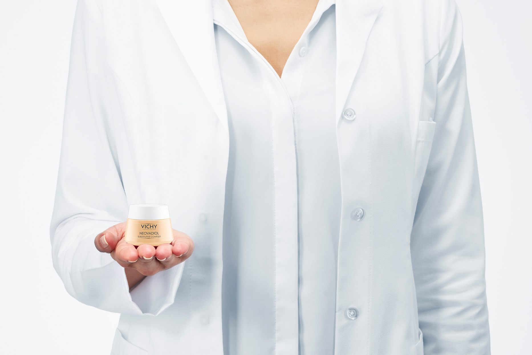 En la postmenopausia, Laboratorios Vichy presenta Neovadiol Magistral, una crema que lucha contra la pérdida grave de densidad, fragilidad y sequedad de la piel; Neovadiol Magistral Noche, que actúa sobre los signos en la piel provocados por la pérdida de lípidos durante la menopausia gracias a su fórmula redensificante, que incluye omegas 3-6-9 nutritivos, logrando reducir la sequedad un 74%, aumentar un 44% la elasticidad y mejorar un 68% la textura de la piel4. Neovadiol Magistral Elixir, un sérum que gracias al poder de los aceites revitalizantes, lucha contra la pérdida de densidad agravada por una sequedad intensa y tono apagado.