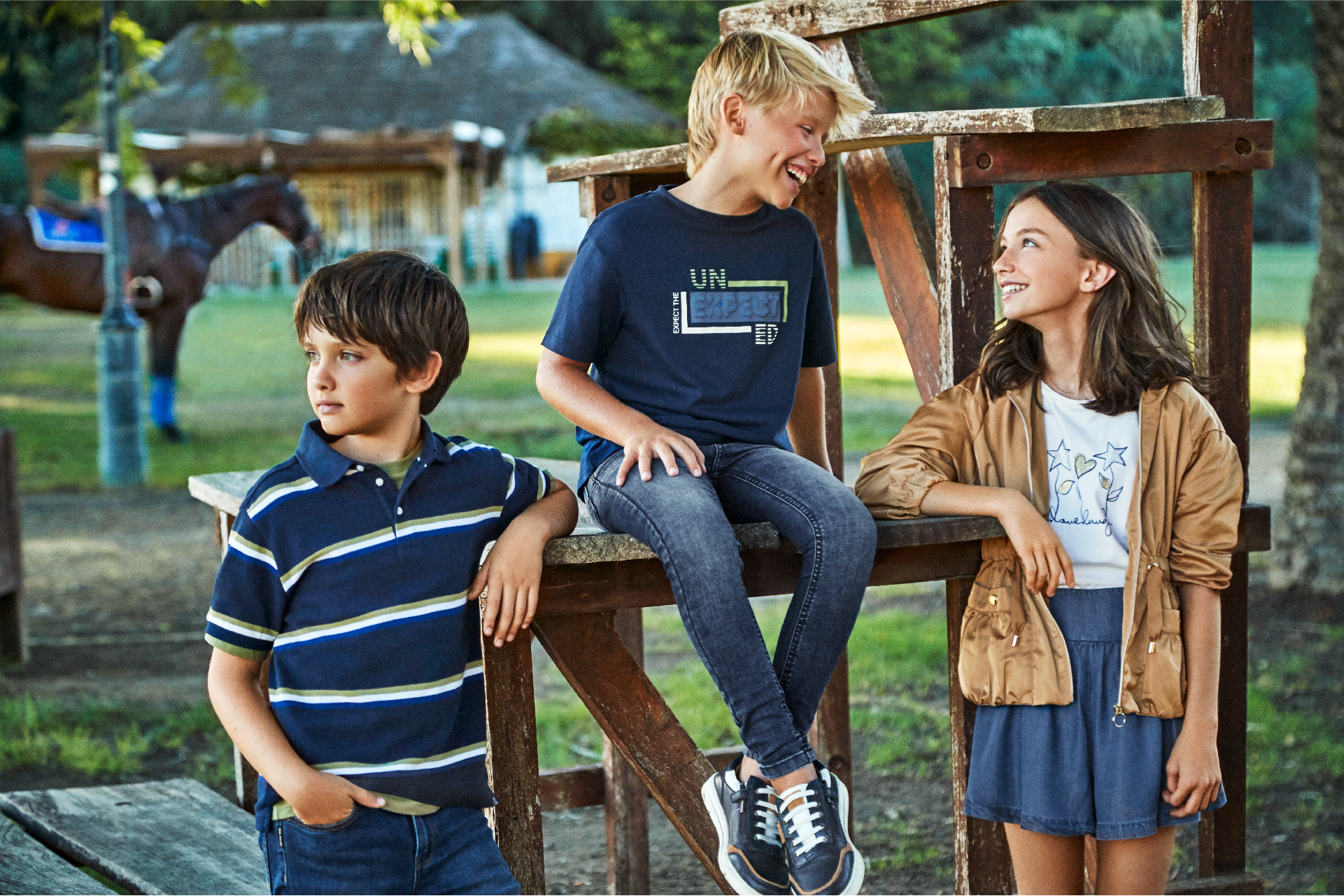 Estampado de camuflaje en azul y negro, motivos espaciales, jeans desgastados o sudaderas con capucha atraparán la atención de los pequeños de espíritu urbano. El tono navy, el amarillo, el gris, el blanco y los pantalones tipo jogger marcan la pauta de una línea atractiva y funcional pensada para la actividad del día a día. La novedad de esta temporada es la colección cápsula Confort, en la línea Mini y Junior (con pinceladas en Baby), basada en tejidos especiales de punto y una paleta de colores neutra, perfecta para cualquier ocasión. Los dibujos en tejidos como jacquard o intarsia texturizada, los estampados de cuadros o los bloques de rayas localizadas le dan a la colección un toque nórdico ideal para el invierno.