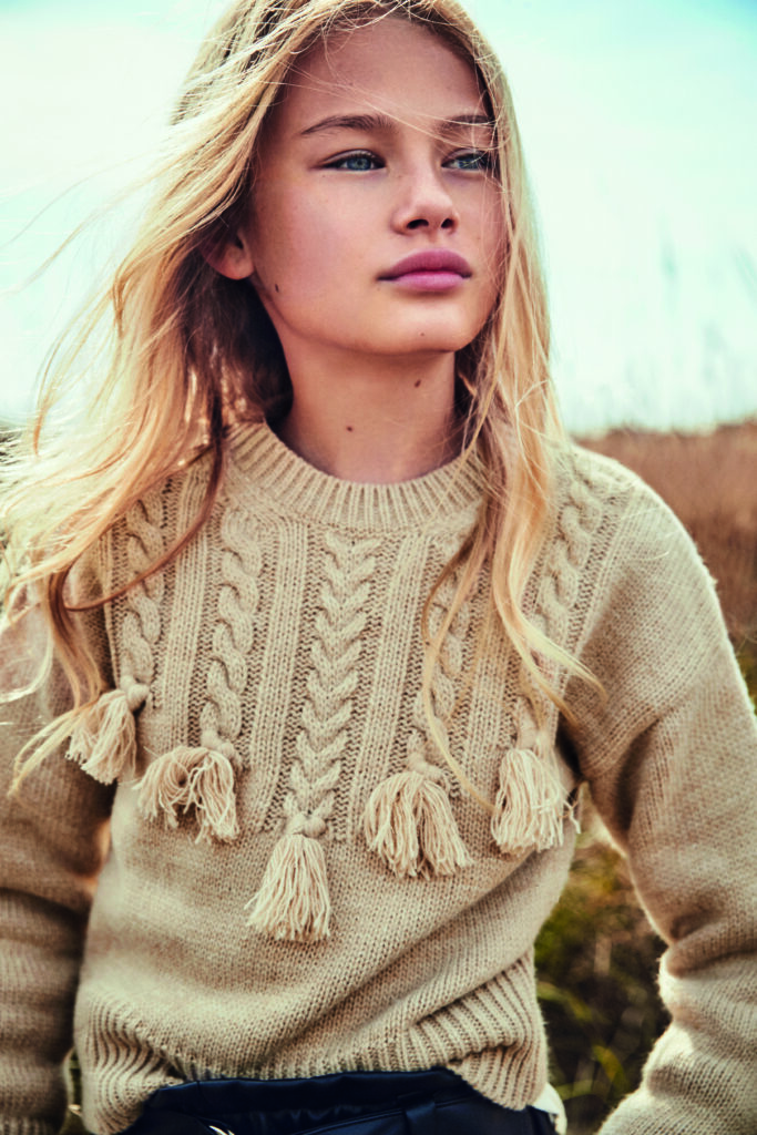El tartán en rojo y negro en falda, vestido y pantalón, la sudadera con mangas abullonadas, el peto y la chaqueta de piel o los jeans de tiro alto se convertirán en las prendas favoritas de las más pequeñas. El camel, el denim lavado y los acabados metalizados aportarán el punto especial a todos sus looks. La colección junior, que comprende de los 8 a los 16 años, incluye una línea Loungewear en la que los joggers y los nuevos básicos cómodos y gustosos son los protagonistas. En las líneas Baby (de 6 a 36 meses) y Mini (de 2 a 9 años) también encontraremos versiones de estas prendas. Los tonos neutros combinados con matices vibrantes en verde oliva, fucsia o lila, el borrego en las prendas de abrigo, los estampados de flores, los cuadros, los topos y el leopardo entusiasmarán por igual a madres e hijas, al igual que los flecos en los diseños de punto, la tricotosa con técnicas combinadas y los conjuntos de leggings.