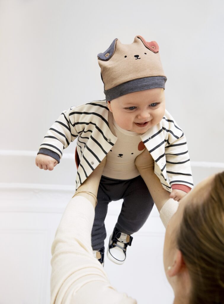 Vestidos con lazadas y faldas con volumen, petos con estampados de ositos, abrigos de punto, sudaderas con capucha y divertidas orejas o mantitas extrasuaves, conjuntos coordinados en tonalidades relajadas de la gama de neutros y estampaciones gráficas. La colección Newborn, dirigida a niños de 0 a 18 meses, está pensada para ofrecer la máxima comodidad y calidad a los más peques de la casa. Los patrones, pensados para adaptarse a los movimientos, la suavidad de los tejidos, la variedad de modelos y tamaños y los diseños cálidos, dulces y funcionales se convertirán en los mejores aliados de tu bebé durante sus primeros meses. Pensando también en la comodidad de los padres a la hora de vestir a los pequeños, Mayoral ha incorporado aberturas más amplias en prendas y calzado, tejidos waterproof en los sacos, y unos sets de primera puesta talla 0 que incluyen complementos a juego.