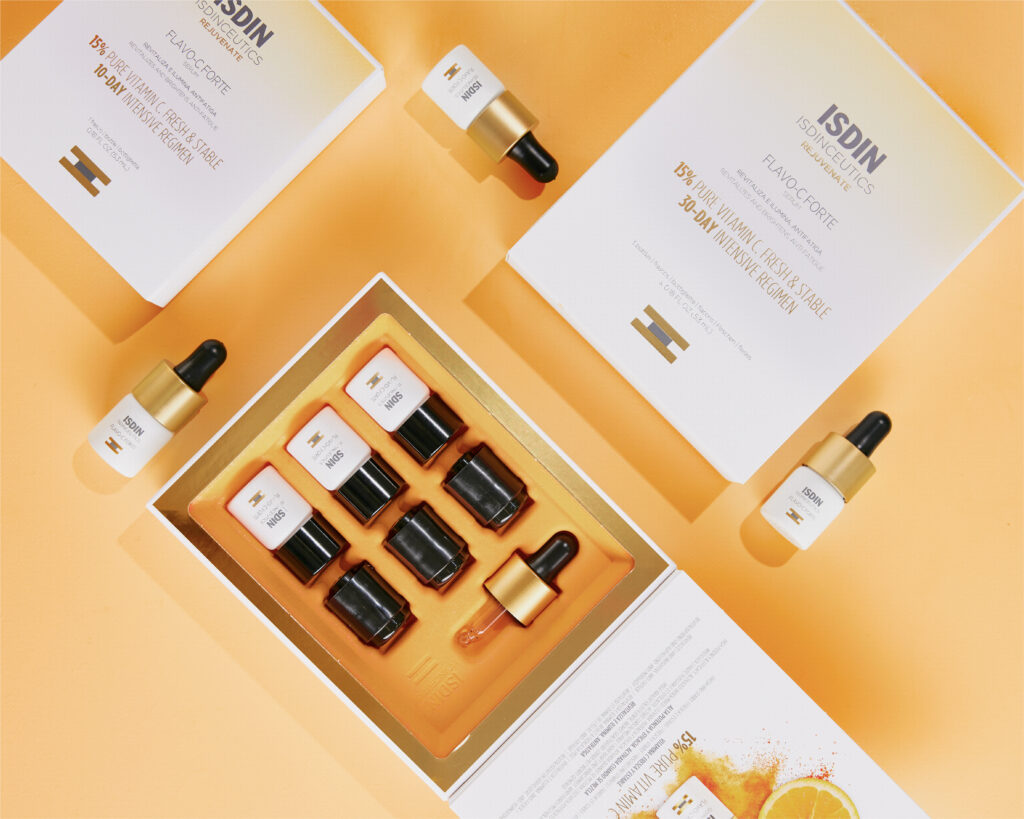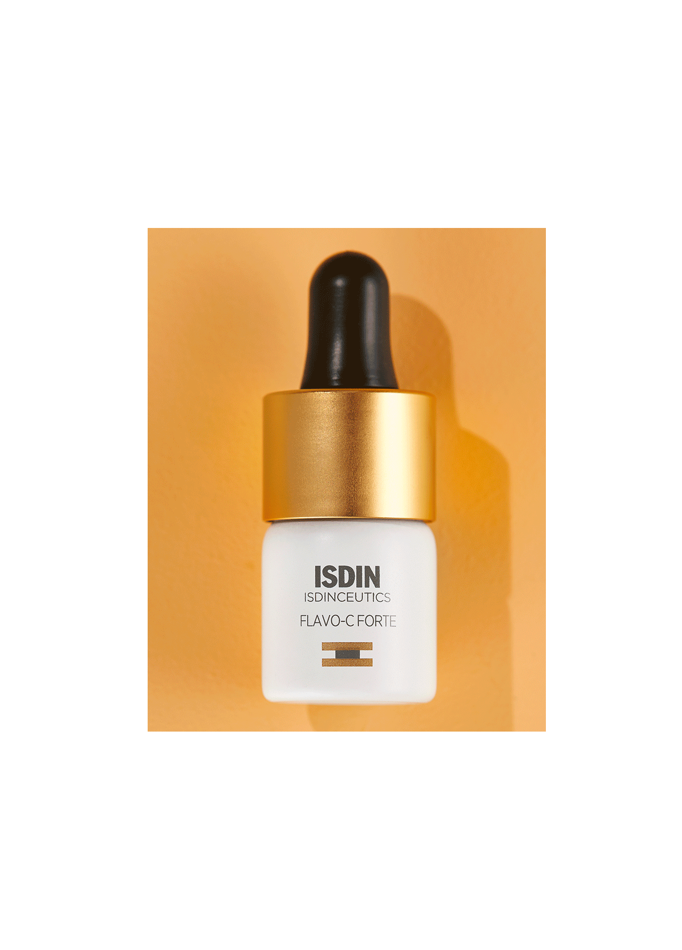 Y es precisamente el poder de la vitamina C lo que ha fascinado a los líderes en fotoprotección. Hablamos de ISDIN y de última novedad, bautizada como Flavo-C Forte y con un 15% de vitamina C pura y fresca, que la mantienen intacta hasta el momento del uso para asegurar que la piel aproveche todos sus beneficios, además de producir una acción antiaging, antioxidante e iluminadora. Pero no solo de vitaminas vive el nuevo sérum de la marca catalana. Su fórmula también contiene un complejo antipolución, una combinación de dos biopolímeros que protegen a la piel de las agresiones externas; vitamina E, que refuerza la acción antioxidante y ácido hialurónico de dos tipos: uno de mayor peso molecular, que penetra en las capas más superficiales de la piel y otro de menor peso, que es efectivo en las capas más profundas.
