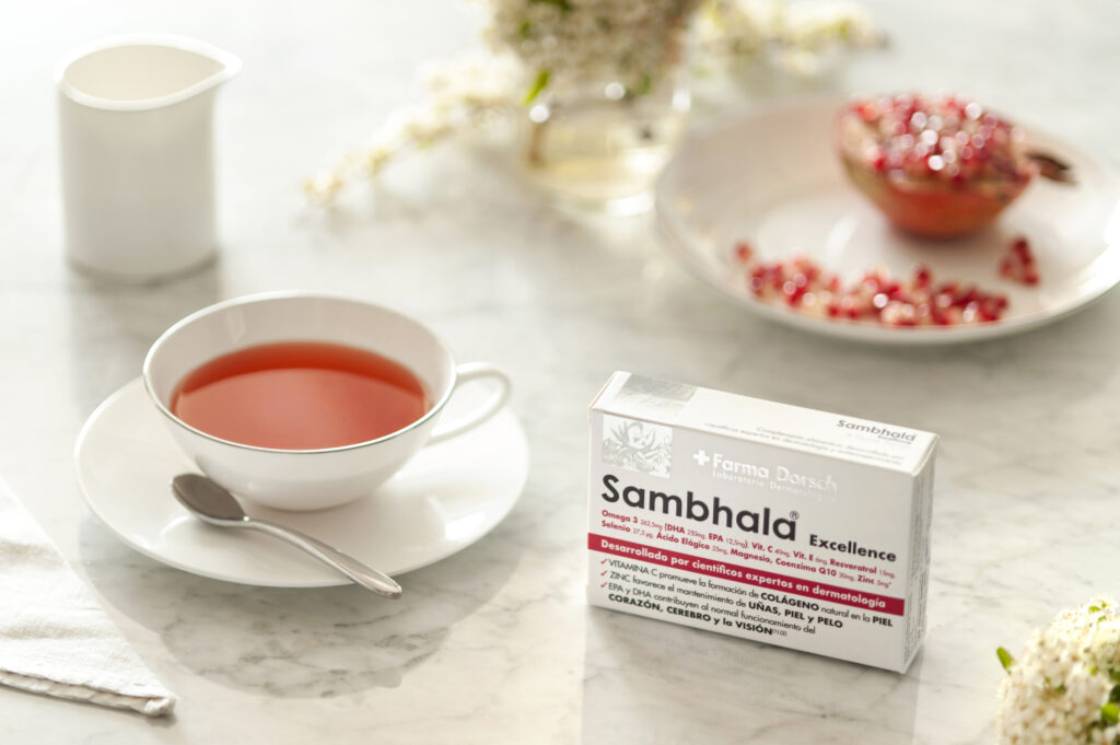 Sambhala Excellence de + Farma Dorsch es un complemento alimenticio que ayuda a retrasar el envejecimiento de todo el organismo