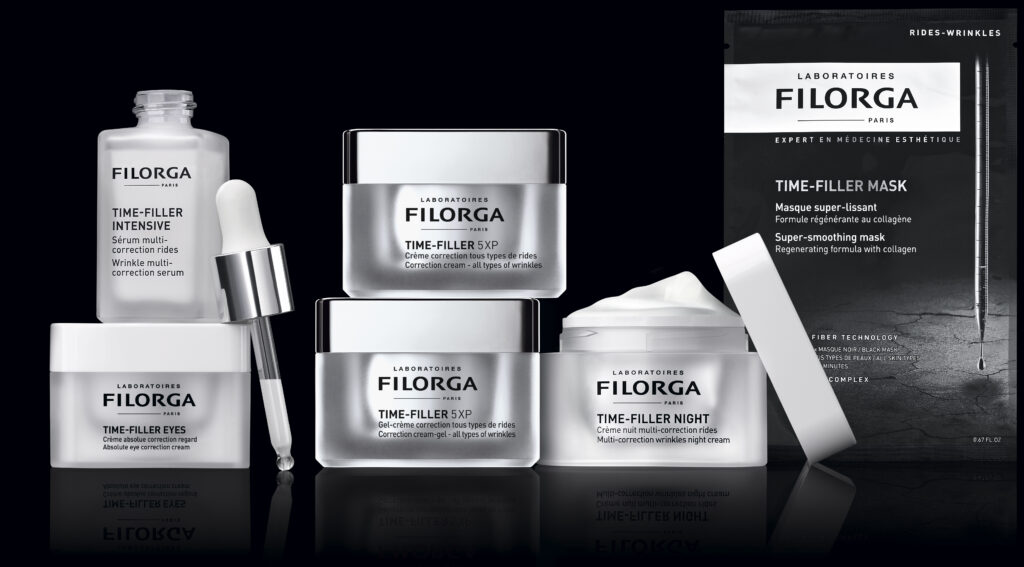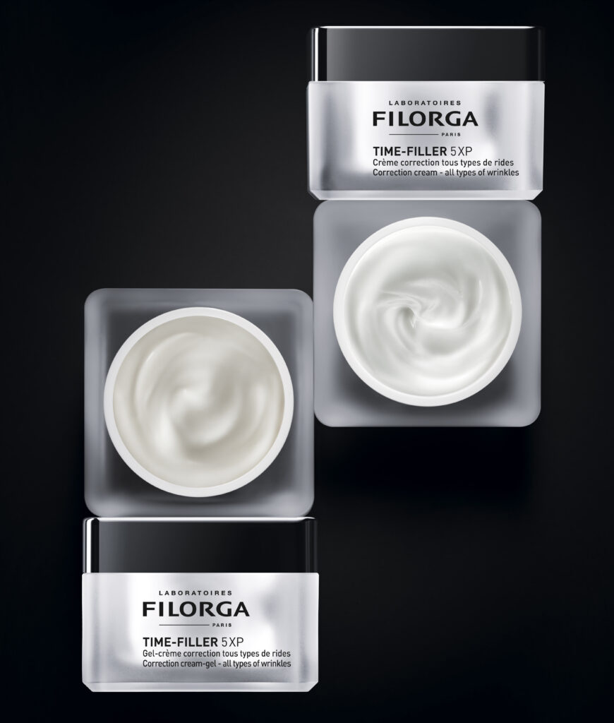 Así, el primer laboratorio francés en medicina estética, fundado en 1978, vuelve a revolucionar el mundo de la cosmética gracias a este elixir de juventud disponible en dos texturas, gel-crema y crema, creado para alisar todas las arrugas, tanto en pieles normales a secas como mixtas a grasas. Convertido ya en un cosmético de culto, avalado por la ciencia, observado por los médicos y elogiado por las mujeres¹, el secreto de este tratamiento radica en su eficacia total antiaging y la tecnología 5XP. Pero no está solo en su lucha por hacer desaparecer los signos del envejecimiento. La gama antiarrugas Time-Filler de Filorga, avalada por más de una década de conocimiento científico, se completa con Time-Filler Intensive, un revolucionario sérum intensivo multicorrección; la crema de noche Time-Filler Night; Time-Filler Eyes, un contorno de ojos que combate las patas de gallo, ojeras y alarga las pestañas; una prebase alisadora de efecto inmediato, Time-Flash, y una mascarilla efecto flash para alisar en 10 minutos las arrugas del rostro, Time-Filler Mask.