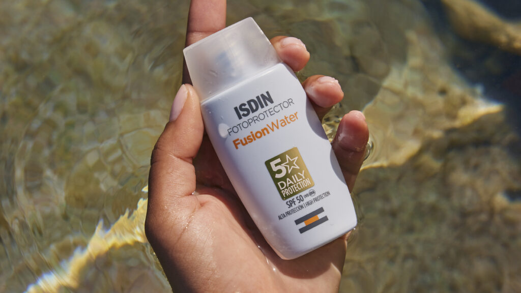 Todas estas preocupaciones las puedes eliminar con Hydro Lotion, el protector solar de ISDIN que además de estar equipado con una alta protección UVB y UVA con SPF de 50, incorpora en su fórmula Chlorella Maris, un elemento natural con acción antioxidante, que detoxifica la piel expuesta a la radiación solar. “Es el organismo vegetal con mayor concentración de clorofila. Gracias a su alto poder antioxidante, ayuda a prevenir la destrucción del colágeno, elastina y laminina y aumenta la expresión de Tioredoxina, protegiendo la membrana mitocondrial”, detalla la doctora. Este protector, también bifásico, ofrece a la piel un aspecto más flexible y elástico y un punto luminoso.