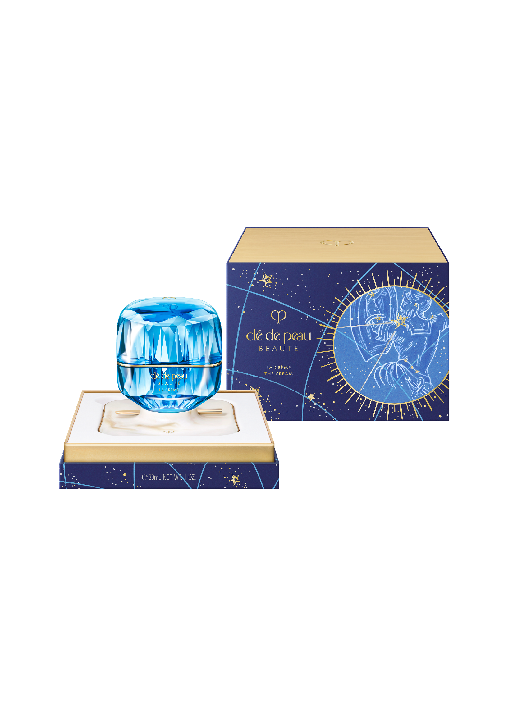 The Radiant Sky Collection está compuesta por La Crème, Lipstick, The Luminizing Face Enhancer, Eye Color Quad, Translucent Loose Powder, The Serum, Cleansing Trio y Lipstick Mini Set. Cada uno de estos lujosos productos se presenta envuelto en el arte de la constelación, decorado con motivos del enigmático cielo nocturno dibujados a mano por Top.