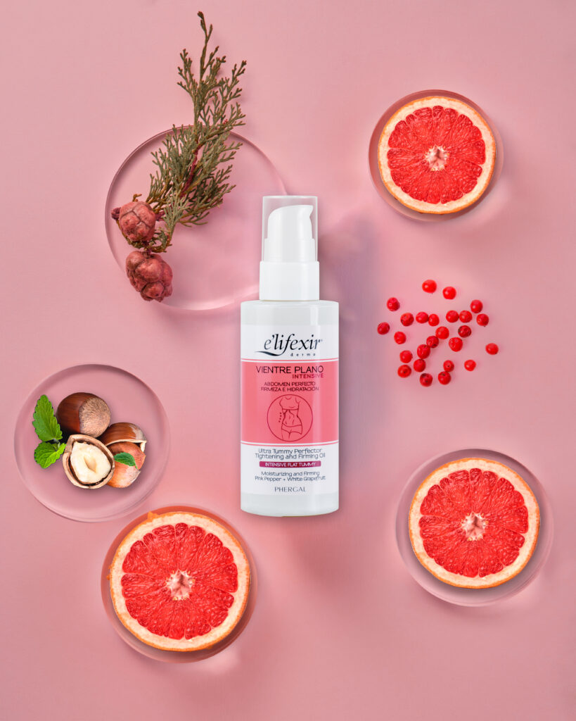 Llega el buen tiempo, empiezan a desfilar los vestidos y los tops. Si buscas presumir de tipazo, e'lifixir de Laboratorios Phergal nos lo pone fácil: su línea e'lifexir Vientre Plano Intensive hará que, combinando hipropresivos con su aceite y sérum, marques abdominales con orgullo, mientras que la línea e'lifexir Minucell Intensive conseguirá que digas adiós a la celulitis y hola a la piel de melocotón