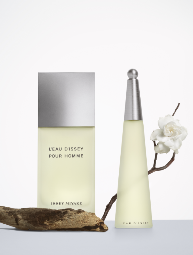 Jacques Cavallier, actual perfumista de Louis Vuitton, fue el encargado de materializar el manifiesto olfativo del diseñador. Para ello, por primera vez en la historia de la perfumería femenina, recurre al calone en altas dosis. Se trata de una molécula de síntesis que encarna el agua en todas sus facetas: desde el frescor de las olas a la cálida brisa marina o a la humedad del rocío. El nariz completó el aroma con pétalos de rosa, un bouquet de flores blancas y loto. Dos años después, Cavallier haría lo propio con L’Eau d’Issey pour Homme, la réplica masculina. Inspirada también en el agua, Miyake buscaba reflejar la fuerza incontrolable de este elemento. En su pirámide olfativa, junto al calone, encontramos yuzu, bergamota, geranio, lirio de los valles, vetiver o tabaco. Una creación acuática amaderada que también resultó disruptiva ya que llevaba la frescura a su máxima expresión, perdurando en todas las etapas del perfume, sin perder un ápice de intensidad.