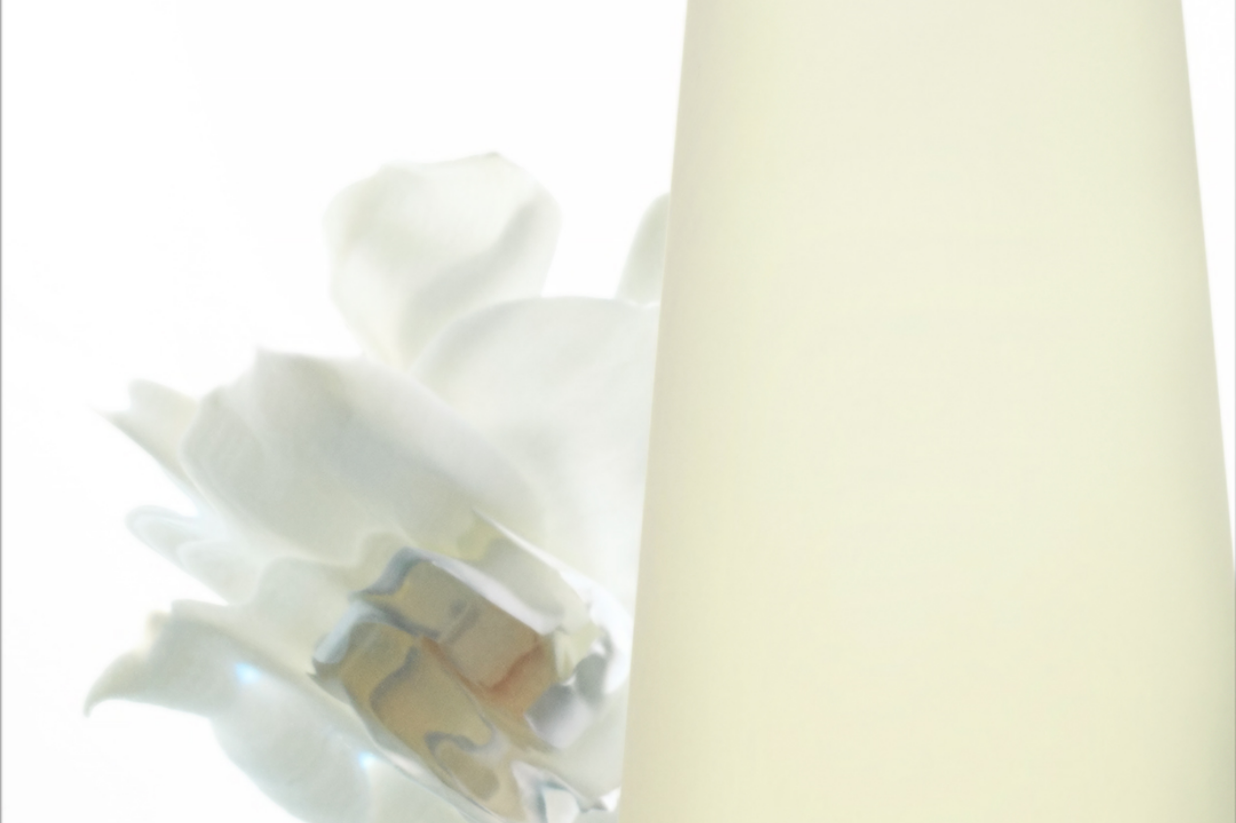 En esta oda a la naturaleza, el frasco de L’Eau d’Issey no podía quedar al margen. Sencillo, esencial y elegante tenía que evocar un manantial de agua brotando. Los diseñadores Alain de Mourgues y Fabien Baron, artífices de esta pequeña escultura que hoy es inconfundible, lograron recrear esa sensación de movimiento trazando su silueta a mano, de modo que no es totalmente recto. Como detalle final, una bolita depositada sobre el tapón. Un guiño a la luna llena posada sobre la Torre Eiffel vista desde la ventana de Miyake en París. A modo de curiosidad, el frasco de la versión masculina, que respira también naturalidad sofisticada, tiene la forma del femenino cuando se gira hacia un lado y se observa de perfil.