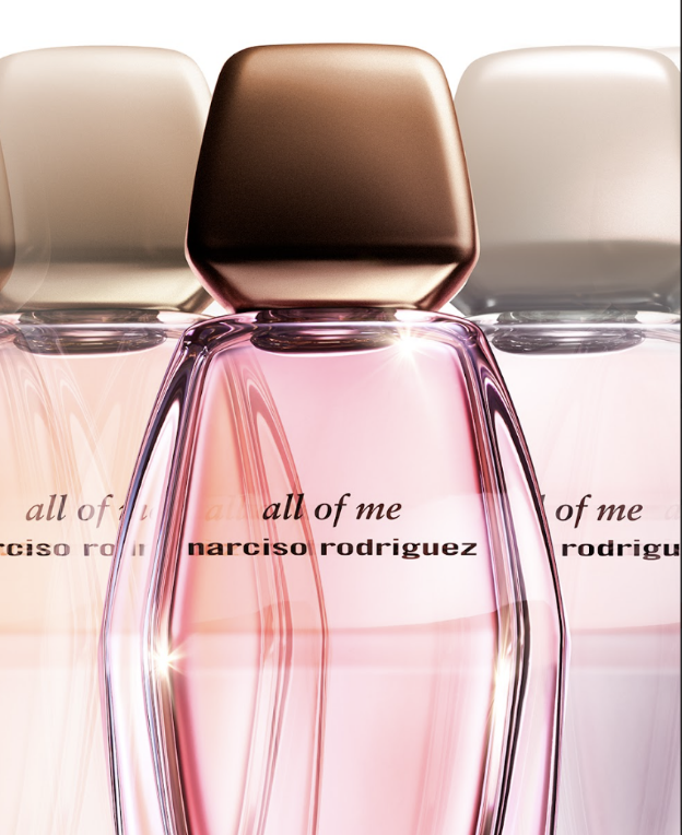 Como bien explica la perfumista, la rosa conforma el alma de ‘All of me’ y fue el punto de partida de Narciso Rodríguez cuando imaginó cómo sería su próximo ‘best seller’. Esta adquiere en la fragancia una personalidad única, ya que, para realizarla, se utiliza una rosa tan particular como la centifolia –conocida por su sensualidad, con matices de especias, tabaco y miel– que, además, es recogida a mano en Grasse (la cuna de la perfumería) y combinada con notas tan excepcionales como la magnolia, el lirio negro y almizcles como el egipcio, un ingrediente recurrente en cada creación del diseñador. Además, estos últimos, se reinterpretan de una forma igualmente novedosa ya que, si normalmente suelen quedar relegados a las notas de fondo, debido a su intensidad, en este perfume, aparecen desde el primer momento, algo que es totalmente rompedor: «Queríamos crear una fragancia sin trampantojos», aclara Bugey.