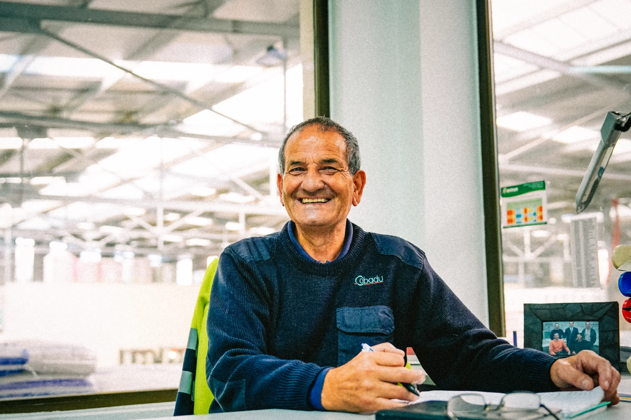 Él es Santiago, responsable de fábrica, trabajador desde el origen. Un pilar fundamental para Cobadu.