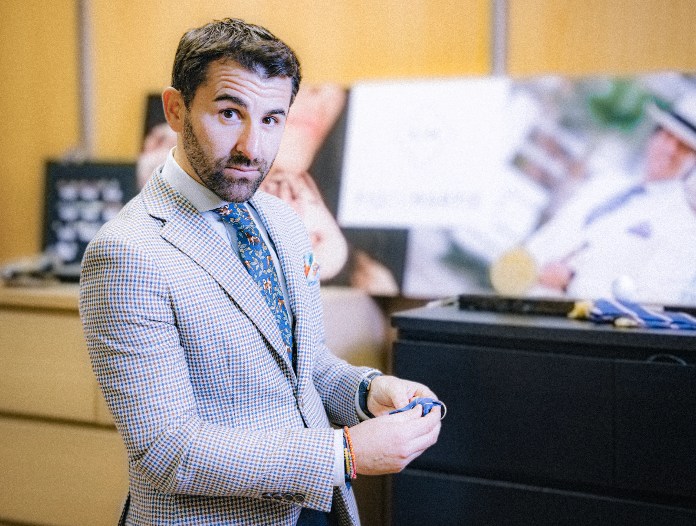 La idea de Fio de Martié nació en un campo de golf de A Coruña. “Yo trabajaba en banca y estaba saturado, quería cambiar de sector. Durante una de nuestras partidas pensamos “¿y si montamos algo juntos? Los dos éramos unos apasionados de las corbatas y decidimos apostar por ello. Y así surgió, compartiendo penas de trabajos anteriores mientras le dábamos al golf”, cuenta Óscar. Fernando siguió con su trabajo, pero empezó a dedicarle menos tiempo, pero el primero sí que abandonó del todo la banca. “Mi entorno, inicialmente, no apoyó la idea. De hecho, fue un poco traumático. No entendían que después de estudiar una carrera y un máster, dejara un trabajo fijo bien remunerado. Luego, cuando vieron que iba en serio, cambiaron de actitud”, explica.