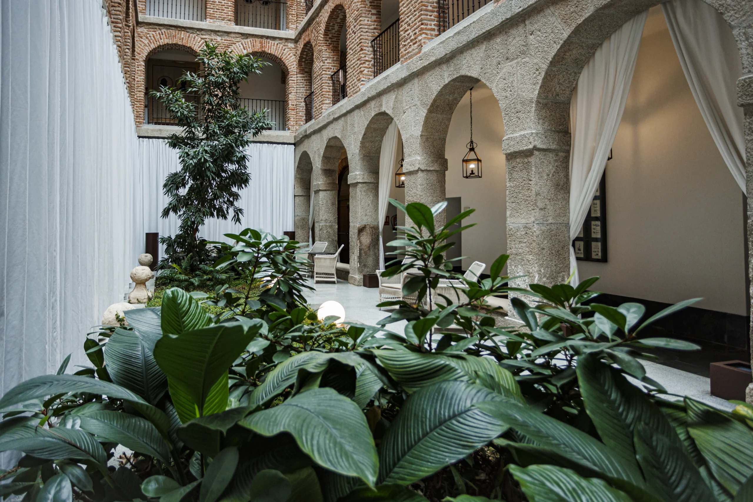 Accediendo al interior del edificio nos recibe una espectacular lámpara de cristal de araña de más de dos metros, custodiada por esculturas. Sobre el restaurante, una galería de arcos con paredes de ladrillo y una claraboya dejan que el cielo azulado del día o las estrellas de la noche bañen la estancia de una atmósfera de ensueño.