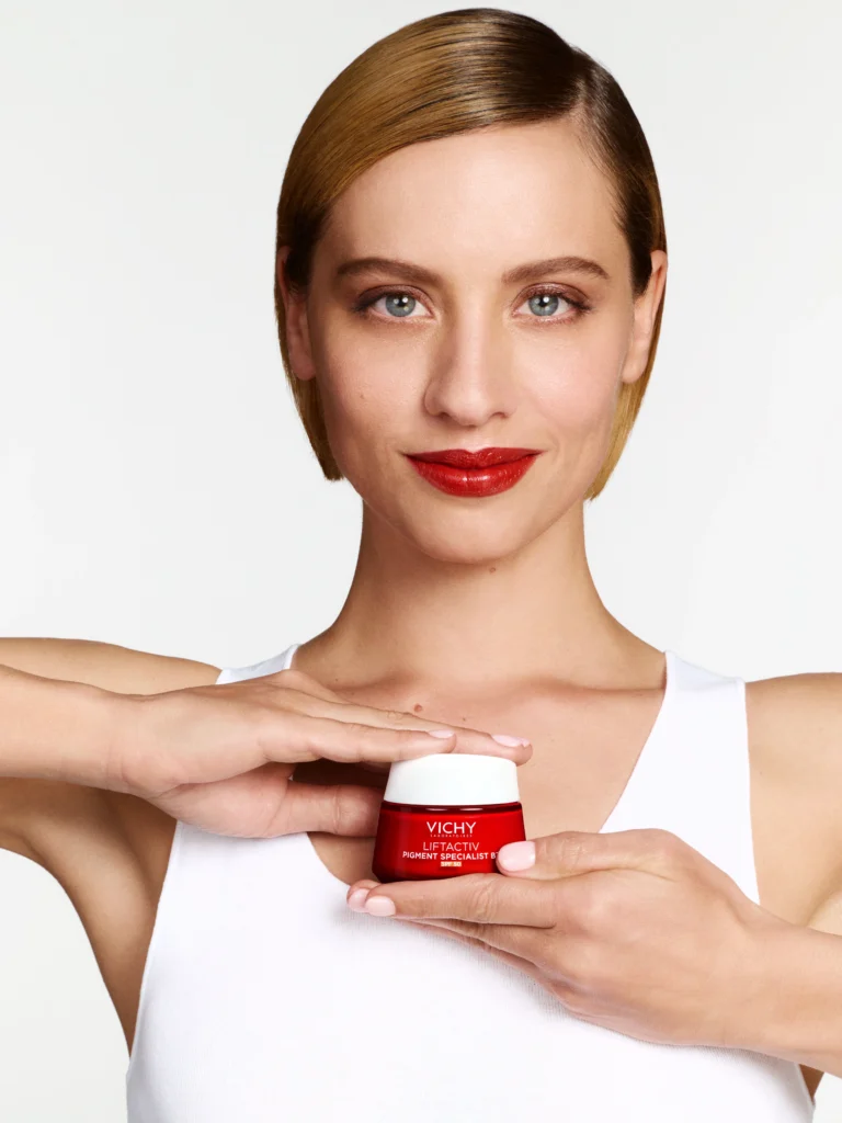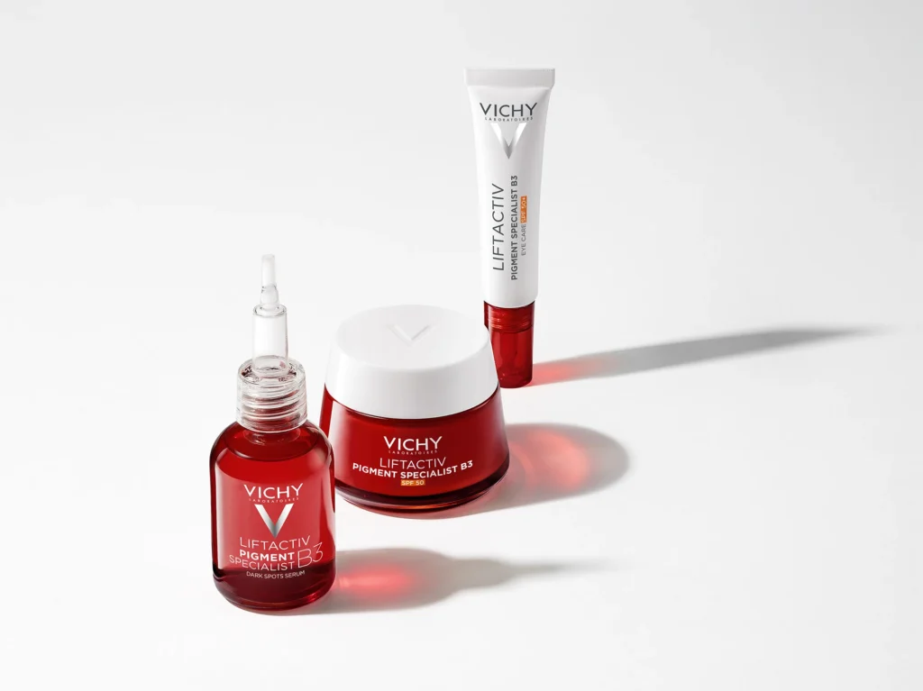 Esta molécula es la protagonista de Liftactiv Pigment Specialist B3, el protocolo antimanchas de Laboratorios Vichy que previene la aparición de manchas, y ayuda a disminuir la intensidad de las manchas ya existentes en la piel, con un protocolo sencillo de tres pasos: sérum, contorno de ojos con SPF50+ y crema de día con SPF50.