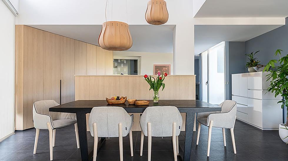 Y es que, en este caso, el marcado componente plástico y arquitectónico de las viviendas originales exigía «potenciar la funcionalidad espacial y adaptar la distribución a un estilo de vida familiar«. Un proyecto en el que se llevó a cabo un »minucioso trabajo de carpintería, en el que se diseña y realiza un traje a medida que resuelve las necesidades planteadas por los propietarios«, detallan sobre el proyecto desde su plataforma.