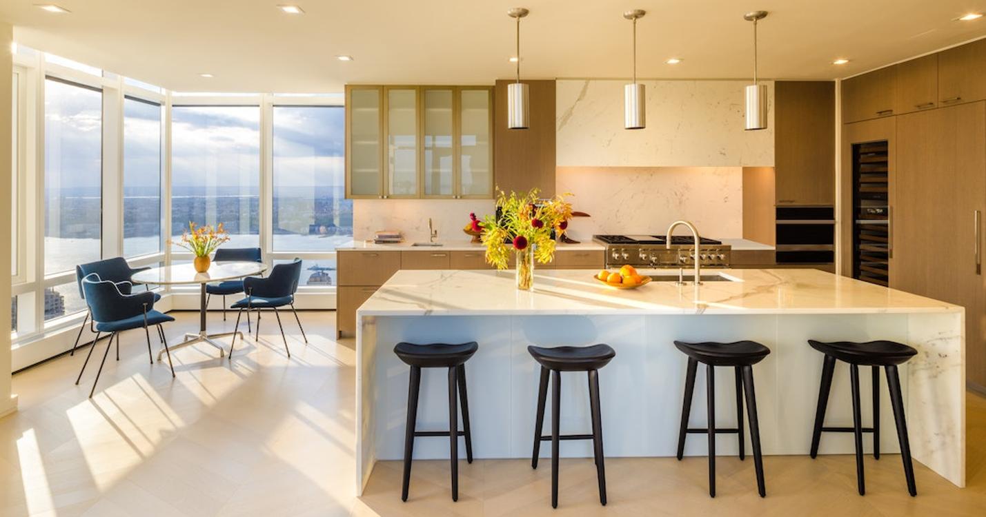 El vestíbulo conduce a una sala de estar de más de 60 metros cuadrados, con panorámica 360º de la ciudad y, desde el comedor, las ventanas del piso al techo enmarcan vistas cinematográficas de Central Park y el skyline de Manhattan. Desde la impresionante cocina, dotada con la última tecnología e innovadores paneles deslizantes de vidrio que permiten elegir entre un espacio 'open concept' o una zona cerrado, el atardecer sobre el río Hudson es simplemente sobrecogedor.