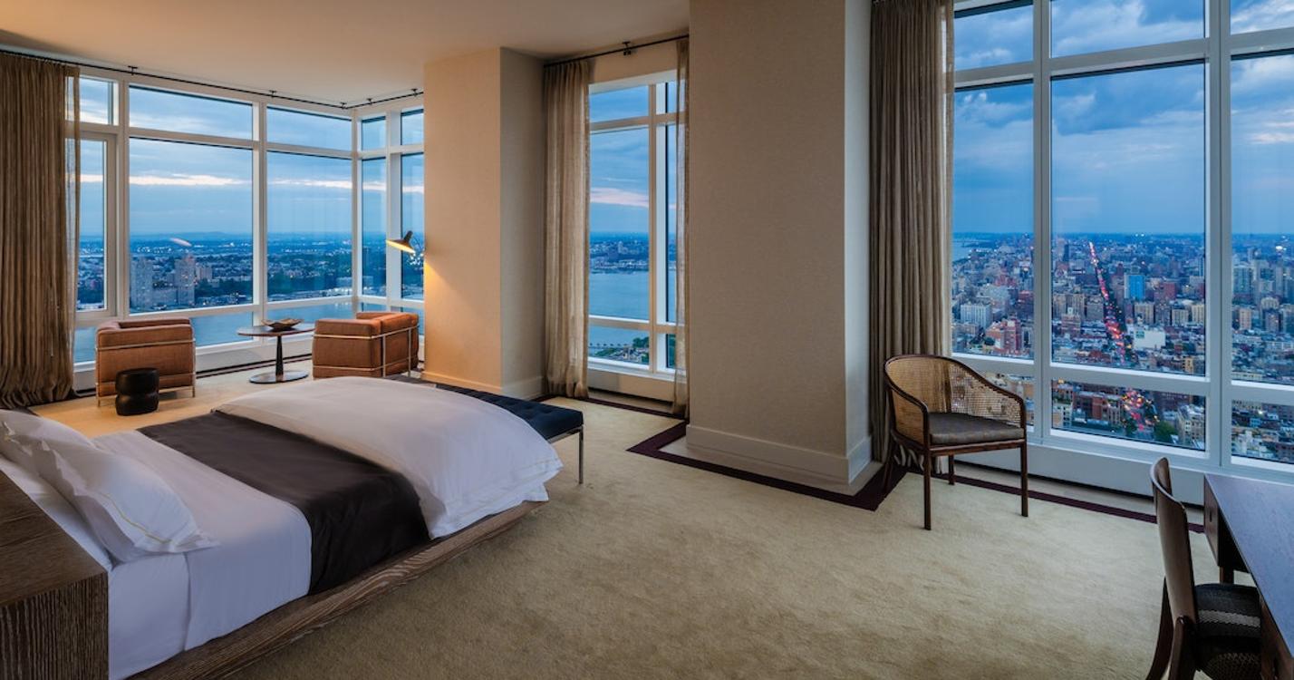 En este primer piso del dúplex (planta 49 del edificio) encontramos, además, dos gabinetes privados, dos tocadores y un estudio. En el piso superior, al que se accede a través de una gran escalera o del ascensor interior privado, encontramos el dormitorio principal, con elegante baño en suite y sala de estar privada, que está dispuesto en el ala oeste y ocupa 60 metros cuadrados con vistas a Central Park, el Upper West Side, el río Hudson y el George Washing Bridge. Además, el ala sur de esta planta tiene otros tres dormitorios (cada uno con baño privado) y un lavadero.