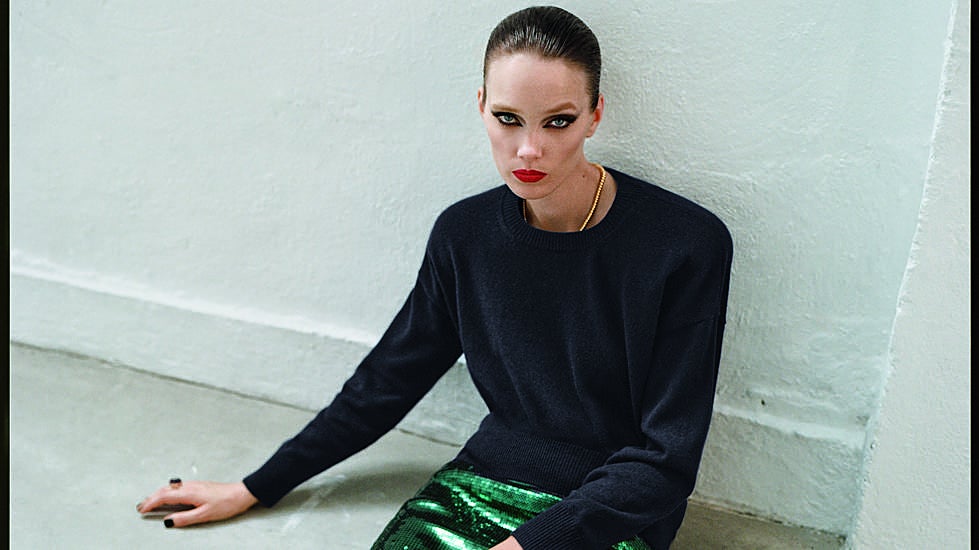 ¿Ir de fiesta con jersey? Sí. Sobre todo si grita tanto lujo como este de Falconeri y sabemos que vamos a pasar frío. Añade una falda midi de lentejuelas, como esta de Sandro y no te olvides de un collar dorado, como este de PdPaola, para redondear el look. El anillo de Platonic y las uñas oscuras lo sofistican aún más.
