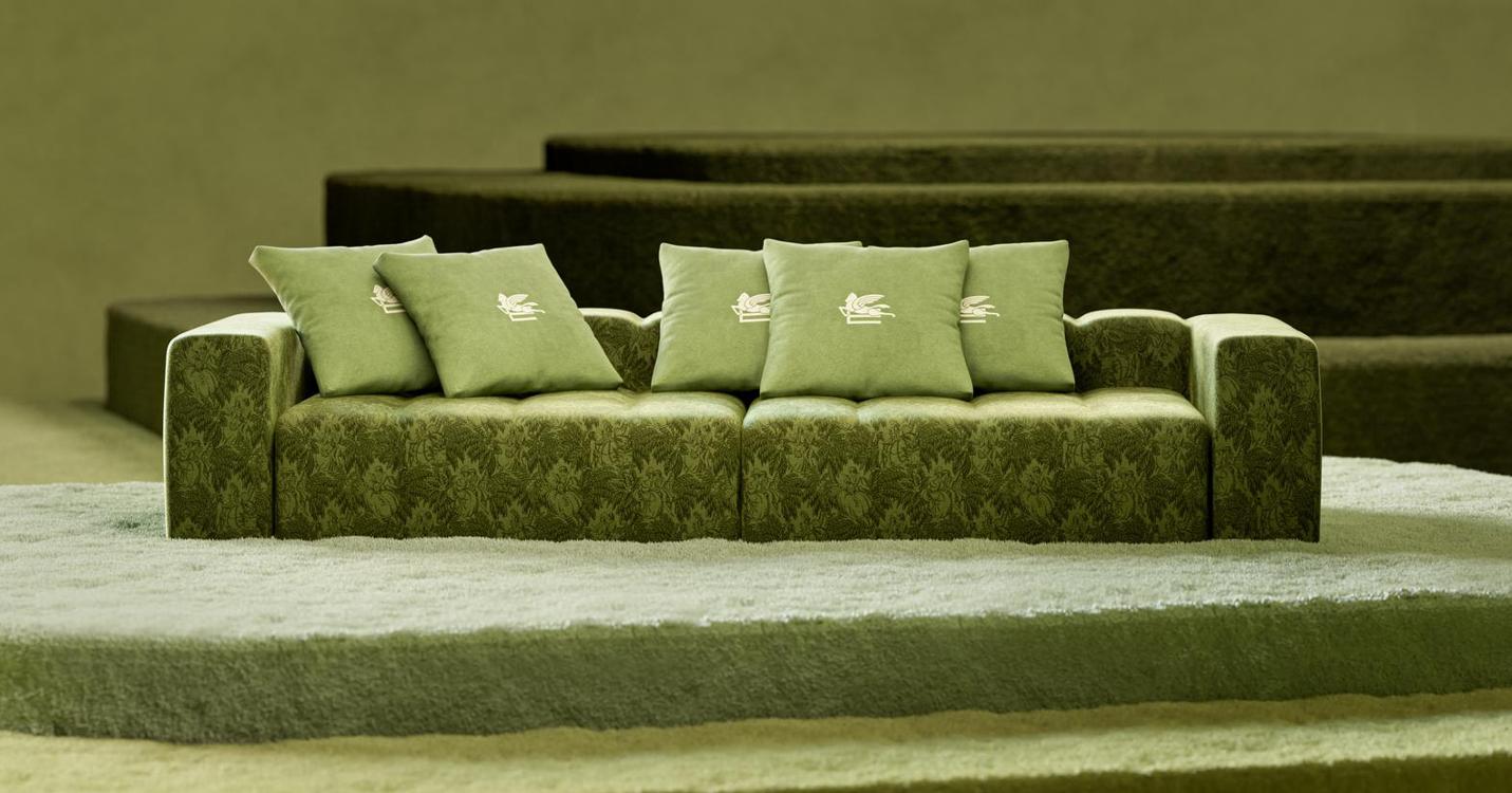 Cerramos este repaso a las casas de Alta Costura con la primera colección Etro Home Interiors diseñada por Marco De Vincenzo que en su reinterpretación de los archivos de la firma, crea nuevas formas de vivir el hogar a través de una «explosión de patrones geométricos tonales y configuraciones modulares en tonos de verde, azul y colores tierra, intercalados con motivos florales».