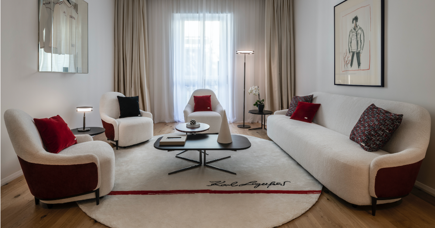 Con el icónico blanco y negro del que hizo seña de identidad en la pasarela como hilo conductor, la propuesta se adueña de cada espacio del hogar con piezas atrevidas, sofisticadas y elegantes que, como el propio Karl, tienen un impacto inmediato.