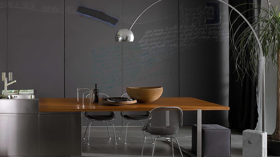 Diseñada en 1962 por los hermanos Castiglioni para el estudio Flos, la icónica silueta de la lámpara Arco es una de las más reconocibles del diseño industrial contemporáneo gracias a su gran brazo curvo de acero que sostiene una pantalla esférica metálica y reposa en una base de mármol de Carrara.