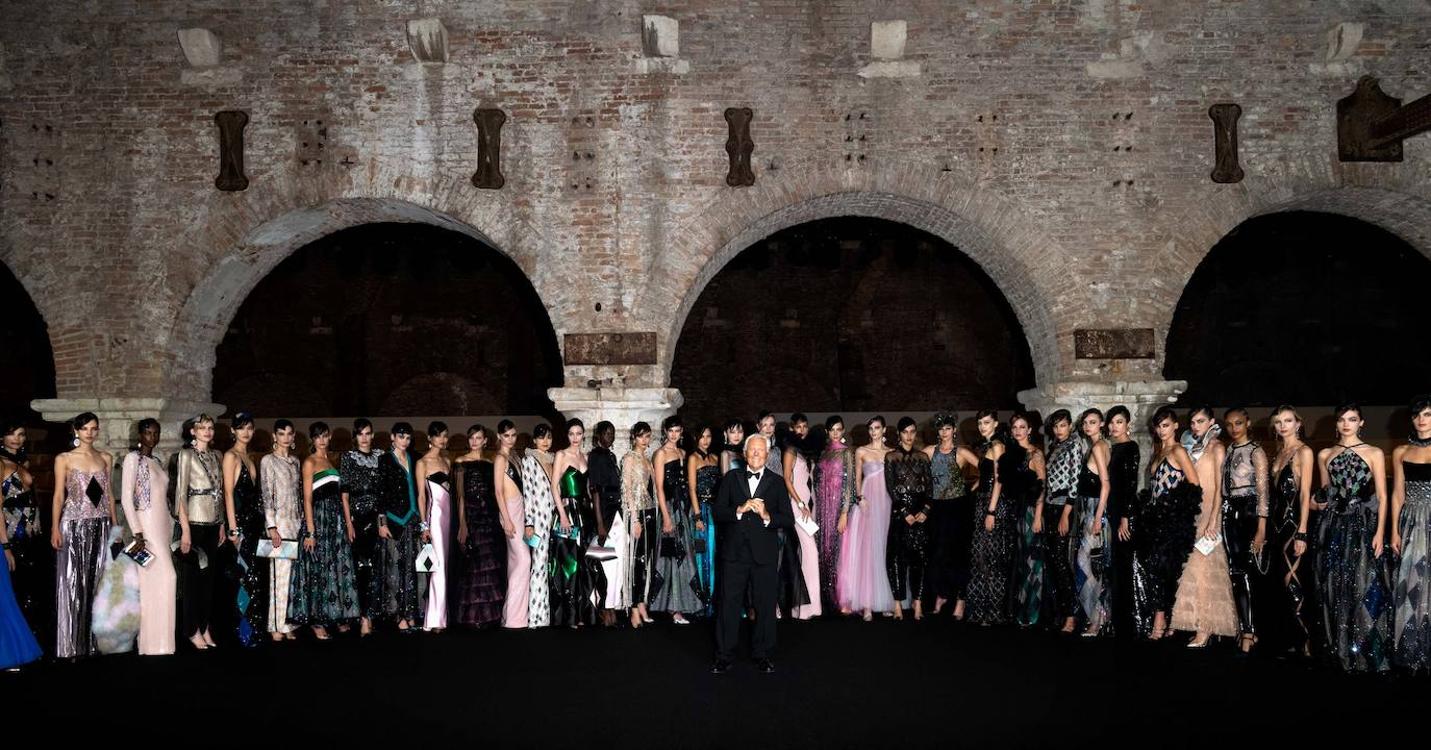 El octogésimo aniversario de la Mostra de Venecia no merecía menos que el espectacular homenaje que el diseñador italiano ha rendido a la ciudad en forma de desfile. Celebrado en el Arsenale, el antiguo complejo de astilleros y talleres, al este de la ciudad, el desfile ha tenido una repercusión internacional que no ha dejado indiferente a nadie.