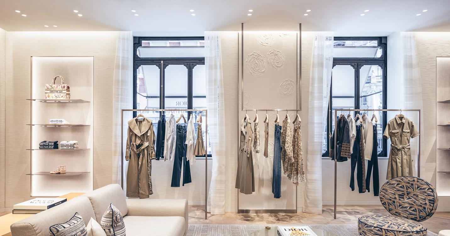 La expansión de la firma Dior hacia el resto del mundo fue fácil gracias al éxito de su primera colección, presentada en 1947, que triunfó gracias a lo favorecedor del New Look: la silueta que enmarca la cintura gracias a una chaqueta Bar entallada y una falda de vuelo que potencia aún más el efecto avispa. Casi 80 años después, Dior cuenta con más de 150 tiendas repartidas entre todo el mundo. La última, recién abierta en Madrid.