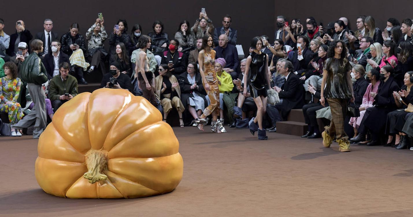 El homenaje más a lo grande lo hizo en el desfile de la colección para el pasado otoño: calabazas gigantes confeccionadas en piel decoraban el escenario decorado en tonos otoñales planos. Eran obra de la artista Anthea Hamilton, con quien la casa colaboraba, por aquel entonces con una exposición en el Museo de Arte Contemporáneo de Amberes, Bélgica.