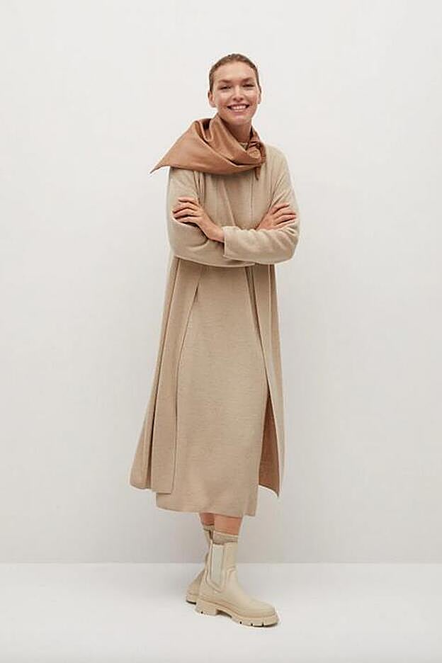El diseño más sencillo de las cuatro propuestas es este, sin botones y bolsillos, con diseño recto y costura de hombro caído. En punto fino, tiene un precio de 39,99 euros y está disponible entre las tallas XS y XL y en beige o gris vigoré.