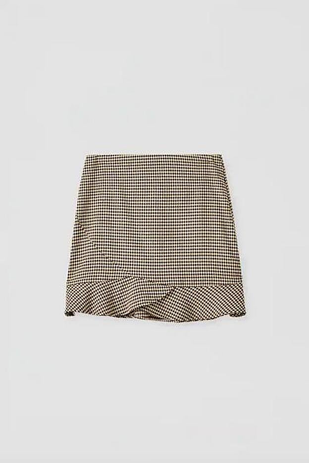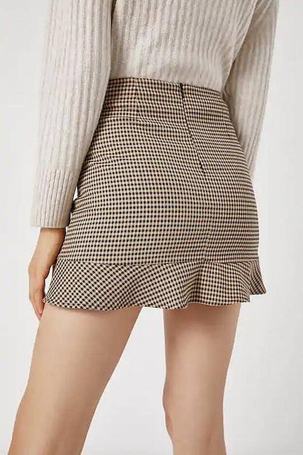 La firma responsable de semejante hallazgo ha sido Pull&Bear, que ha adaptado el estampado a las circunstancias de la temporada, ha reducido el tamaño y el número de los volantes, pero ha mantenido el tamaño mini de la falda. El resultado es una minifalda en tonos marrones perfecta para ponerte con tus botines beige o tus botas altas marrones. Un diseño lleno de encanto al que seguro que tú tampoco te vas a resistir.