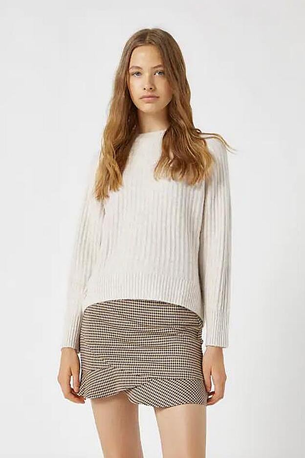 En tonos beige y negros, Pull&Bear ha apostado por un bonito estampado de cuadros mini para esta prenda que a pesar de su tamaño es perfecta para el otoño.
