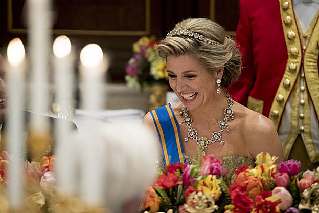 Juliana Awada estaba muy elegante y sofisticada, pero como ya hizo Letizia hace poco más de un mes en Madrid, Máxima de Holanda se vistió 'de Reina' y brilló con un vestido de corte princesa en color maquillaje con blonda bordada de Jan Taminiau (que estrenó en la boda de su hermano en 2014). Al igual que su homónima española, Máxima sacó las mejores piezas del joyero real y, además de la tiara bandeau de diamantes rosas de la Reina Guillermina, lució unos pendientes a juego y desempolvó una espectacular gargantilla de flores de la Reina Juliana (la abuela de Guillermo de Holanda) que llevaba más de cuatro décadas sin lucirse en público por ninguna de las mujeres de la familia real holandesa.