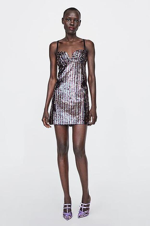 Vestido de lentejuelas multicolor: 39,95 euros.